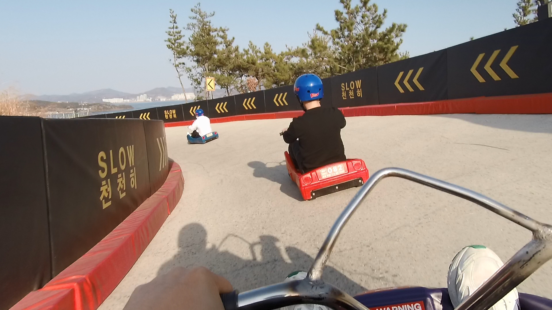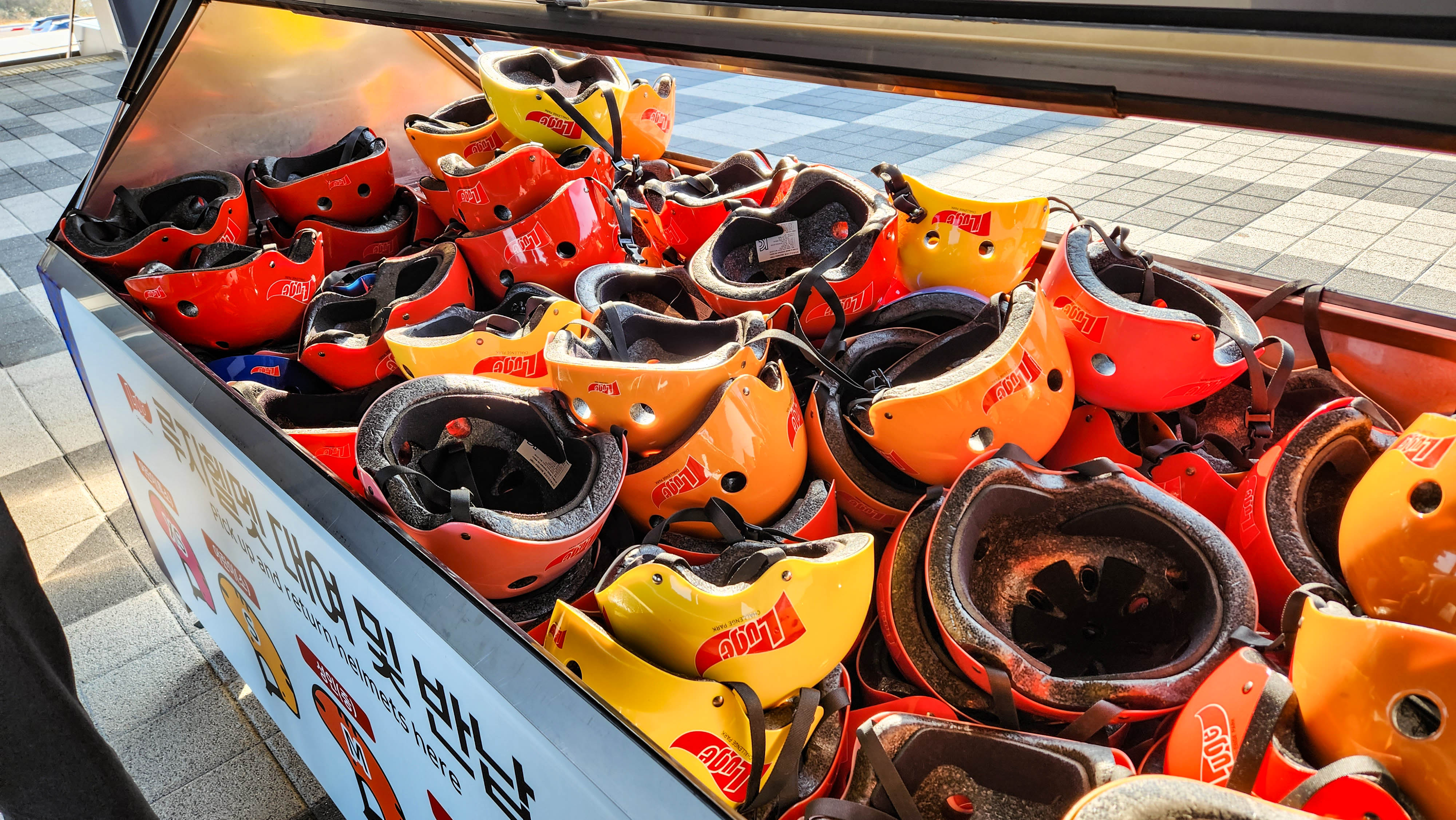 처음 탑승 시 간단한 안전 교육 이수 후 즐길 수 있는 챌린지파크 루지! 동력 없이 중력으로 움직이기 때문에 조작은 간단하지만, 제법 경사도도 있고 코너의 뱅크각도 꽤 강한 편에 난이도별로 4가지 코스로 선택해서 달릴 수 있어 기대 이상의 빠른 속도로 스릴 있게 스피드를 즐길 수 있다. 우리는 3회 권으로 구매, 총 3번을 오르내리면서 탑승했는데 시간 여유가 있는 분들은 가족들과 더 넉넉하게 타도 좋을 것 같다.