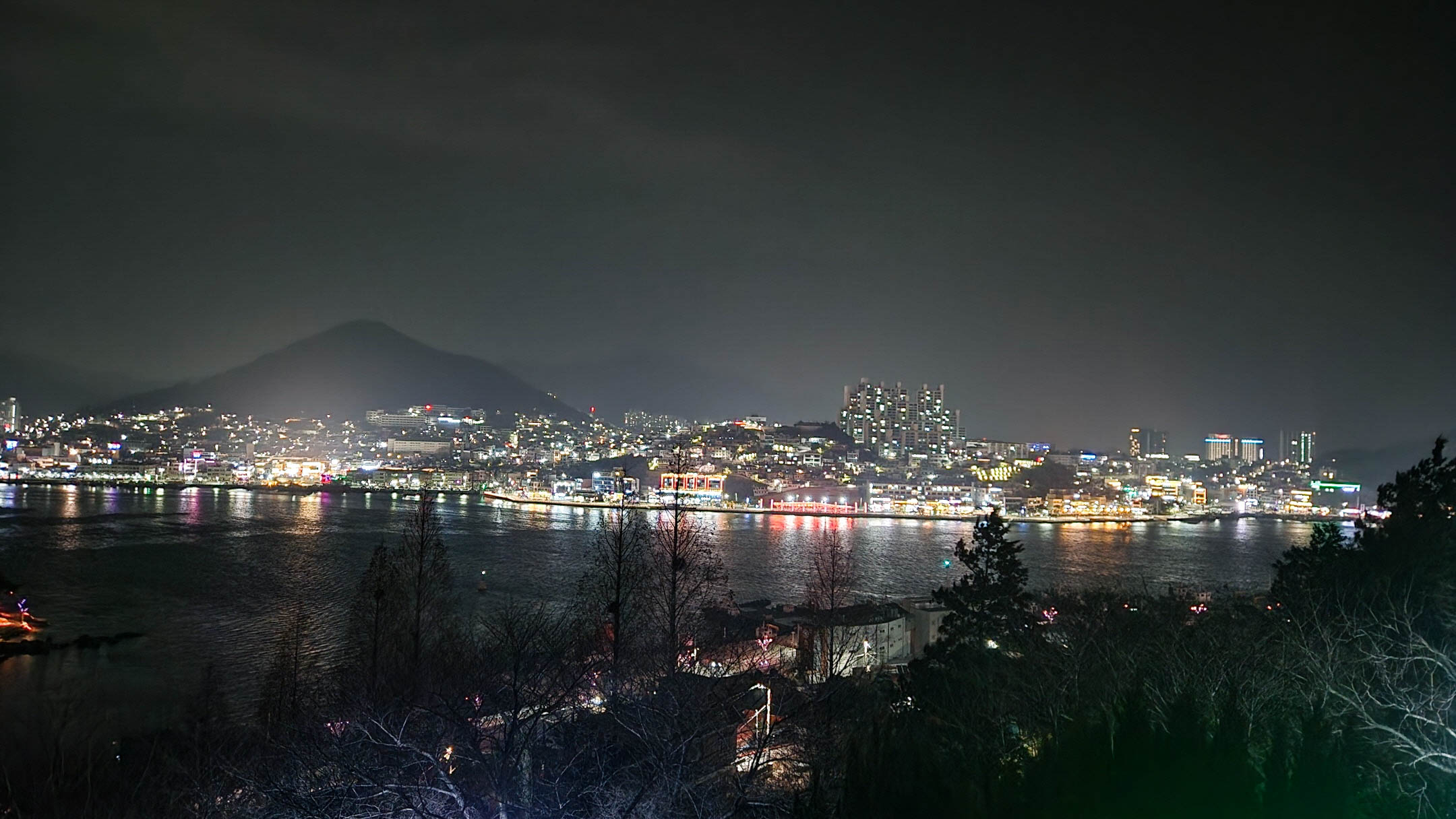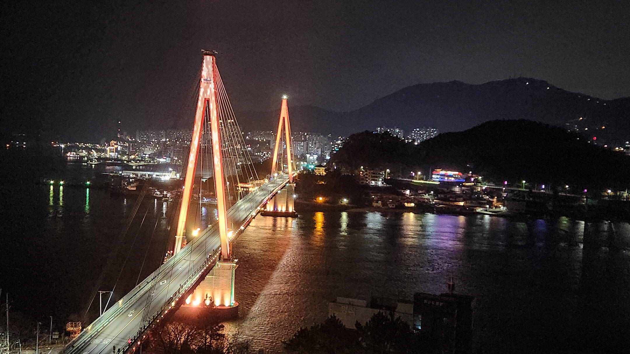 주말을 맞아 북적거렸던 여수 시내도 월요일을 앞둔 밤이 되자 잔잔하고 조용해진 시간. 우뚝 솟은 돌산대교의 주탑의 붉은 조명과 함께 아직 잠들지 않은 아파트, 가로등의 조명이 반사되어 빛나는 여수 밤바다를 바라보고 있으니 괜한 근심 걱정들이 뚝 사라지고 그냥 멍하니 풍경에 취하게 만든다.
