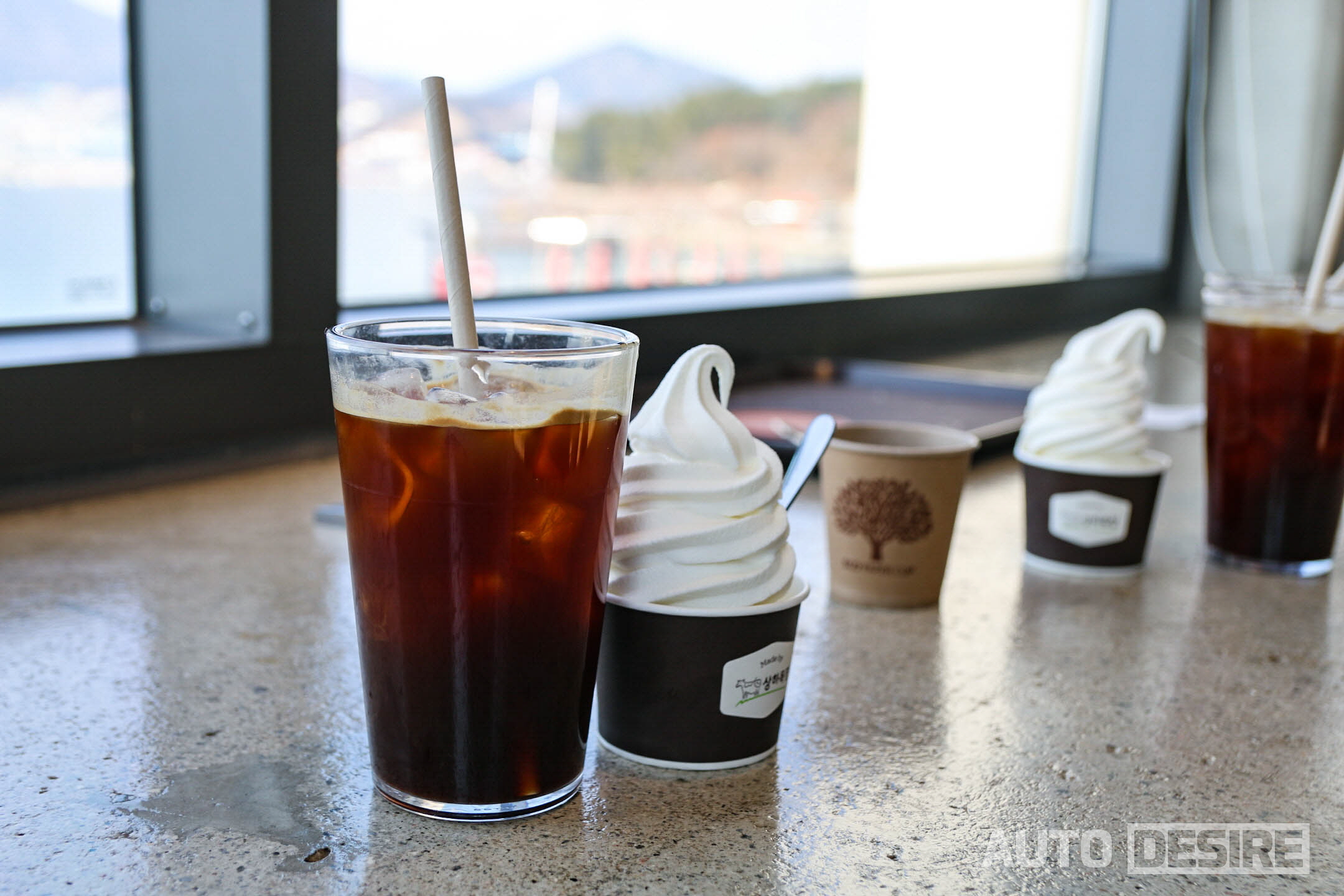1층 실내 공간도 상당히 여유로운 편인 프롬나드. 1월 답지 않게 따뜻한 기온에 맑은 날씨, 시원한 오션뷰가 이미 다 했지만 시원한 아이스 아메리카노의 맛도 좋았다. 카페인만으로도 정신이 좀 들어서 좋았는데, 다른 동생 둘은 당 보충도 필요했는지 아이스크림도 추가.