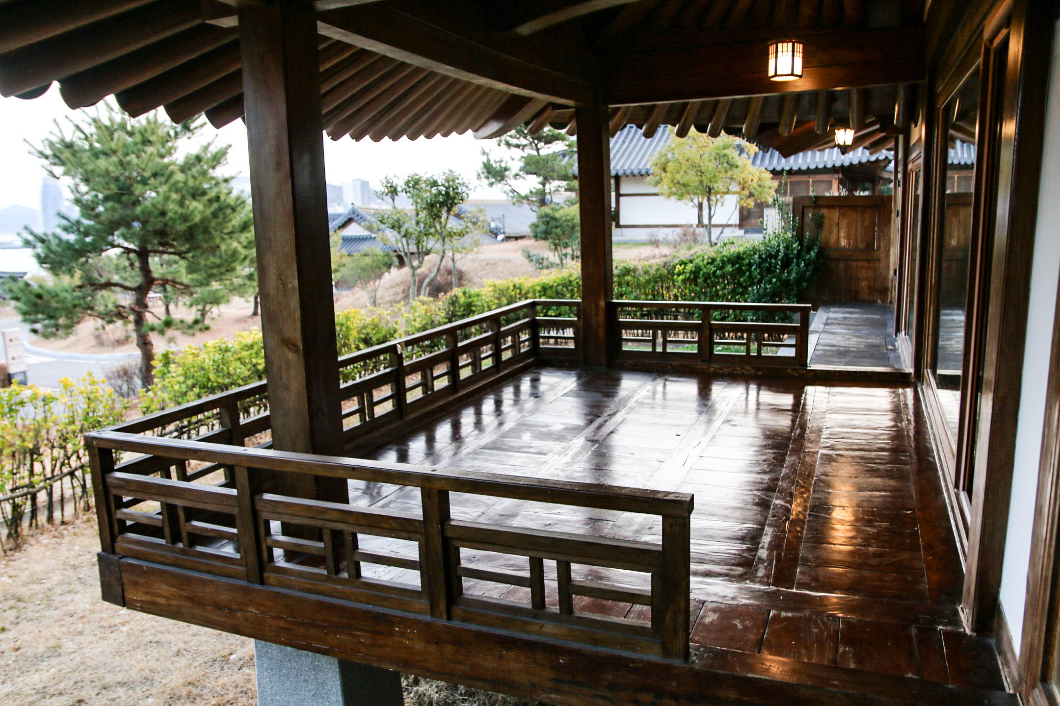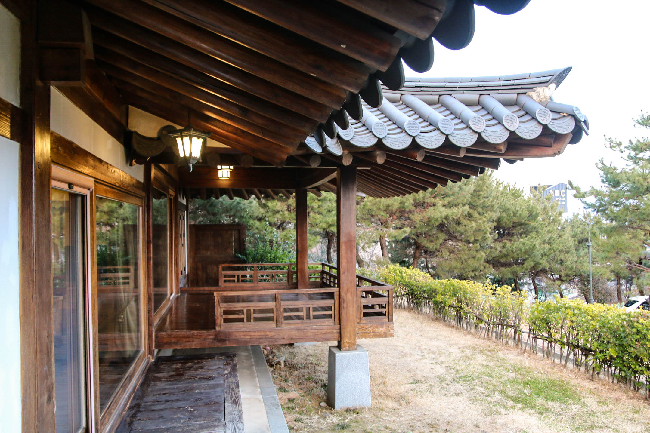 열심히 놀고 사진도 찍고 하다 보니 시간이 저녁 시간을 향해가고 있어 다시 또 부지런히 오늘의 숙소로 이동. 4명의 남정네들이 넉넉하게 이용할 수 있으면서도 특색 있는 장소에 묵으면 좋을 것 같아 선택한 곳은 전통적인 한옥에서 숙박할 수 있는 '한옥호텔 오동재'. 요즘 잘 접하기 힘든 전통 한옥을 체험할 수도 있고, 바로 앞에 여수 엑스포광장과 오동도를 마주하고 있어 마루 너머로 보이는 풍경까지 예술이었다.