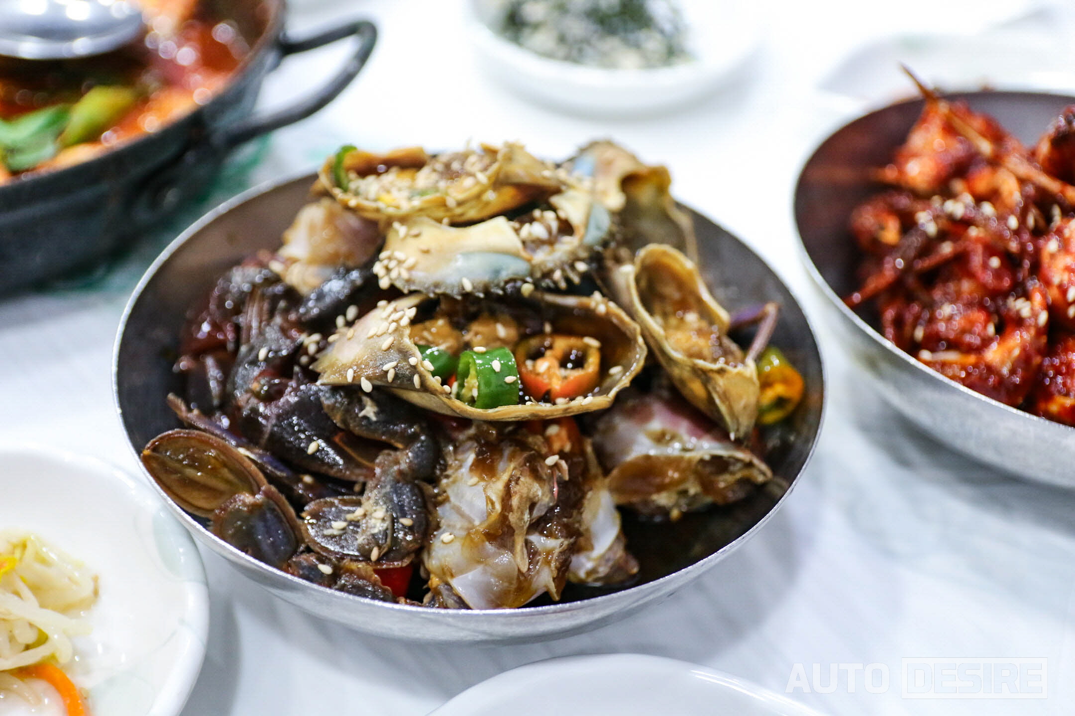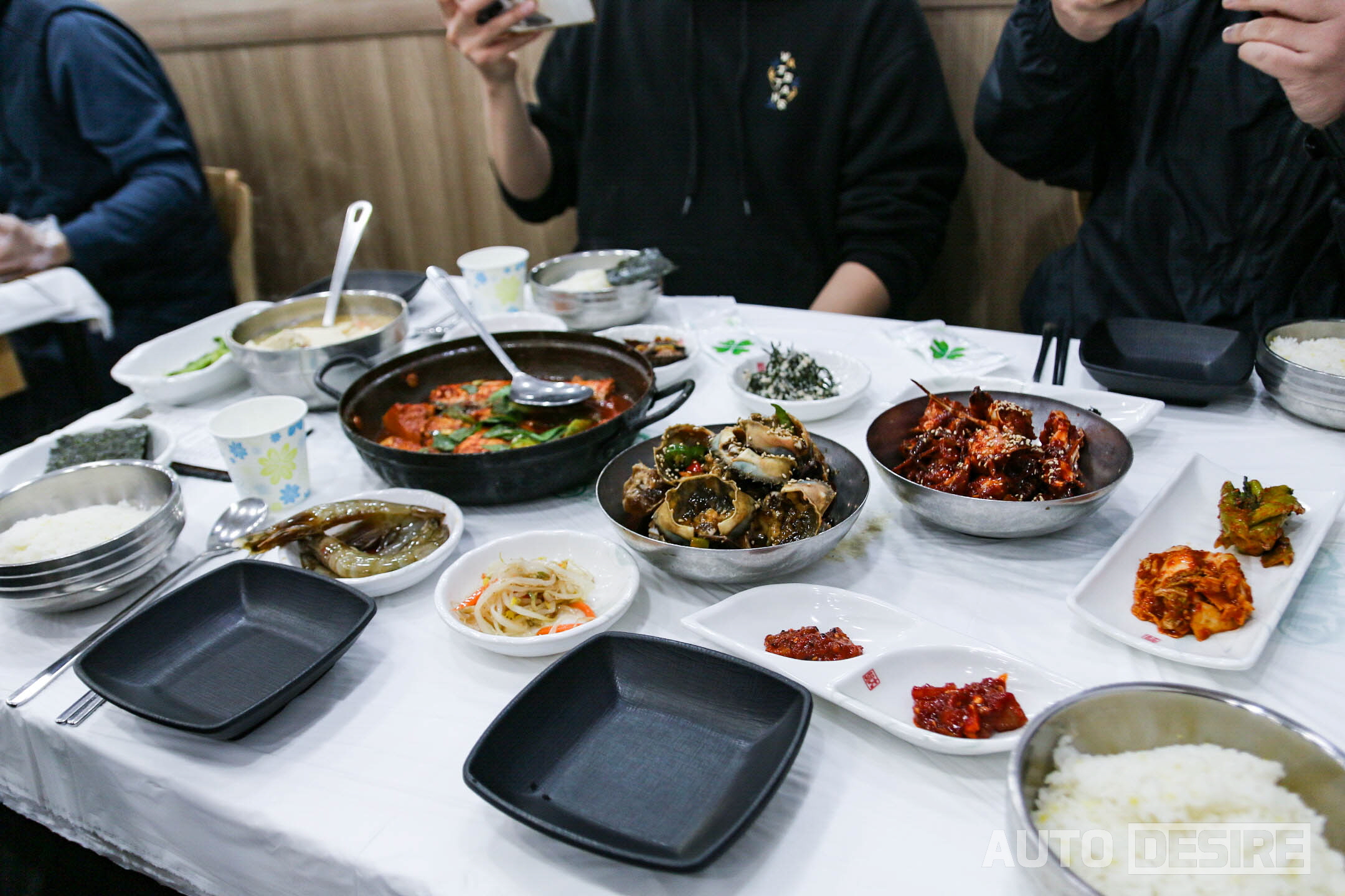 일정 동안 한 조로 같이 다닌 '자동차이야기' 동생이 게장을 못 먹어 안타까울~뻔 했지만 여수 게장 백반집 다수가 갈치조림 백반도 같이 팔고 있기 때문에 걱정 無. 인원수에 맞춰 돌게장+갈치조림 백반 2인에 돌게장 백반 2인으로 총 4인상을 주문했다. 게장은 비린 맛없이 신선한 간장 돌게장과 양념 돌게장 두 가지로 나오고, 여기에 다른 여수 특산물인 돌산 갓김치에 간장 새우장, 각종 젓갈과 밑반찬까지 아주 풍성하게 나온다.