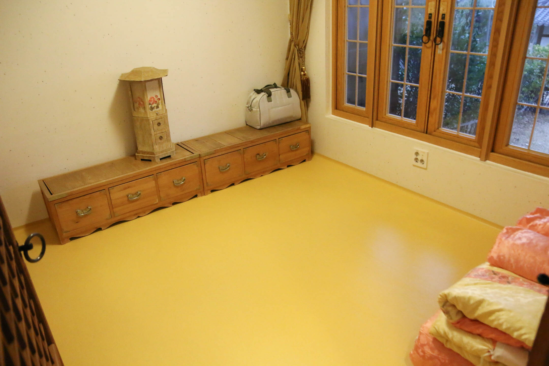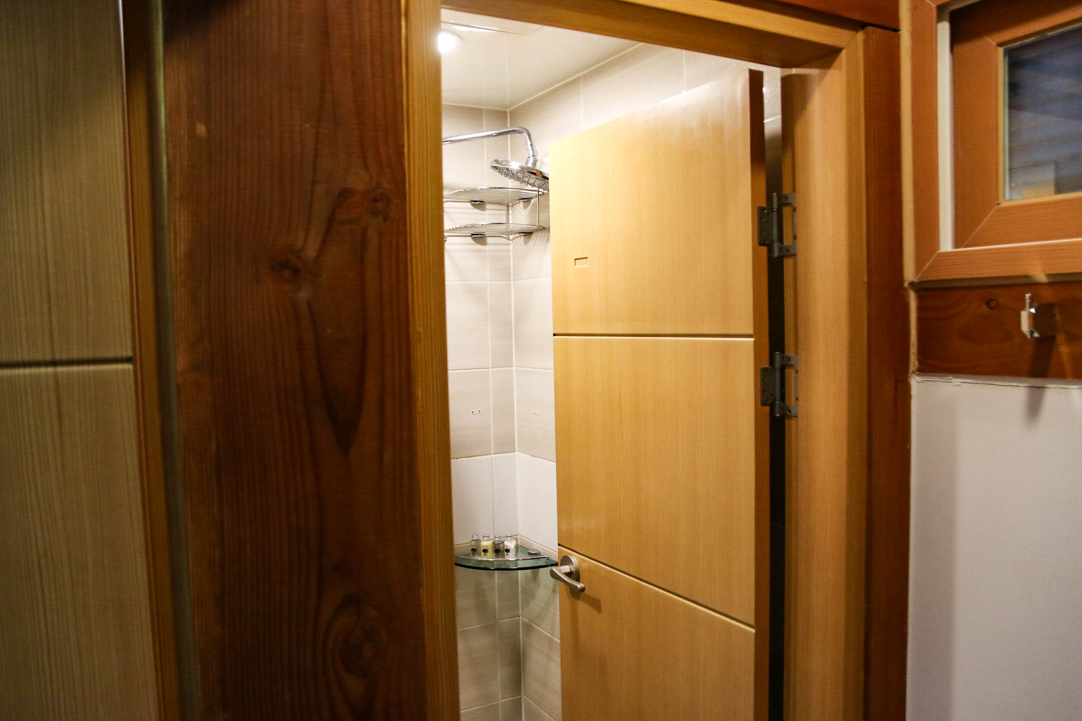 마루에는 원목 탁자와 TV, 커피포트와 믹스커피, 녹차가 제공되고 객실은 온돌방과 침대방 두 가지로 마련되어 있다. '자동차이야기'와 나는 등 뜨뜻하게 지지기 좋은 온돌방을, 'M군'과 'DJ'는 침대방을 선택했다. 세면대와 화장실도 객실 수에 맞춰서 2개씩, 깔끔하게 잘 관리되어 있어서 화장실 이용할 때나 샤워할 때에도 밀릴 걱정 없이 편하게 사용할 수 있어 좋았다.