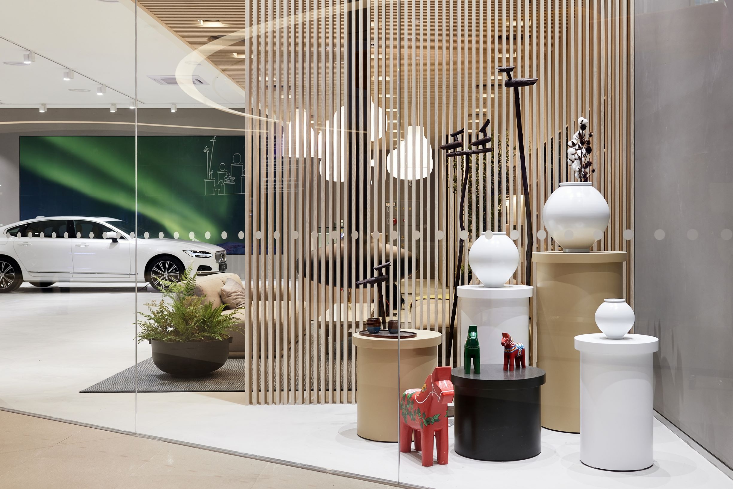 또한 스웨덴 거실처럼 편안한 스칸디나비안 리빙룸 형태의 '개방형 공간'과 스웨덴과 한국의 아이덴티티를 동시에 느낄 수 있는 전시 공간인 '아트 에어리어', 볼보자동차 클래식카의 미니어처를 만나볼 수 있는 헤리티지 존, 안전의 대명사인 볼보자동차의 기술 혁신을 경험해 볼 수 있는 테크 존, 볼보자동차에 적용되는 내장재 가죽을 직접 만져보고 체험할 수 있는 '카 스튜디오' 등의 공간이 마련되어 고객들에게 다양한 볼거리와 체험거리로 차량 전시 외에도 다양한 콘텐츠로 볼보자동차를 경험할 수 있게 했다.