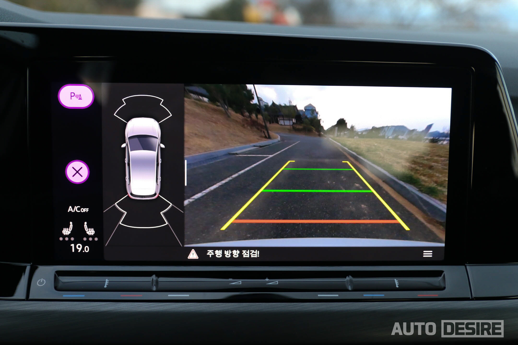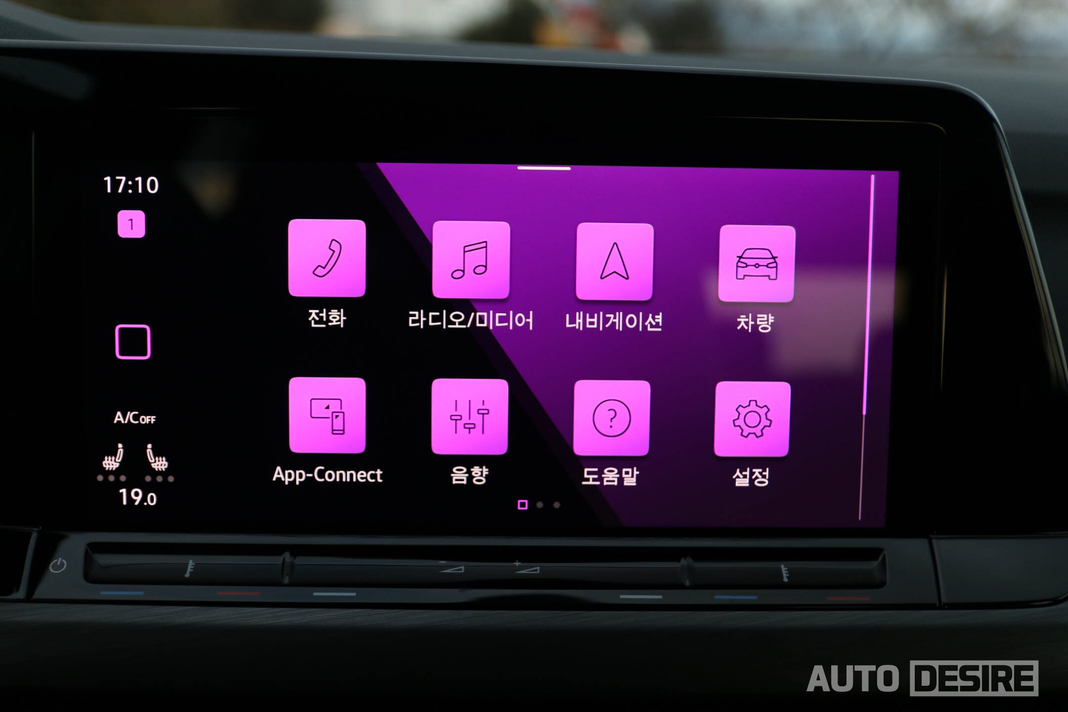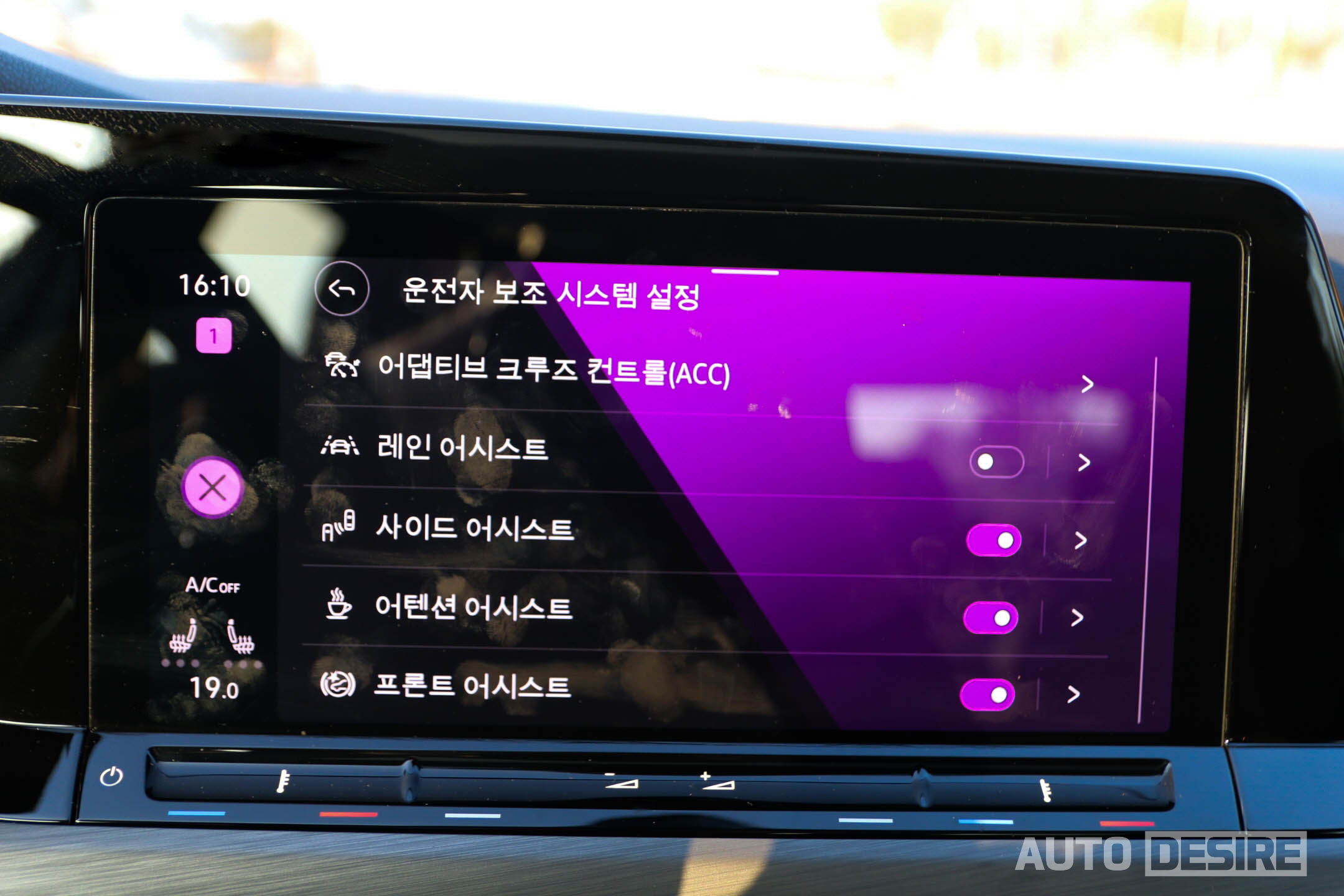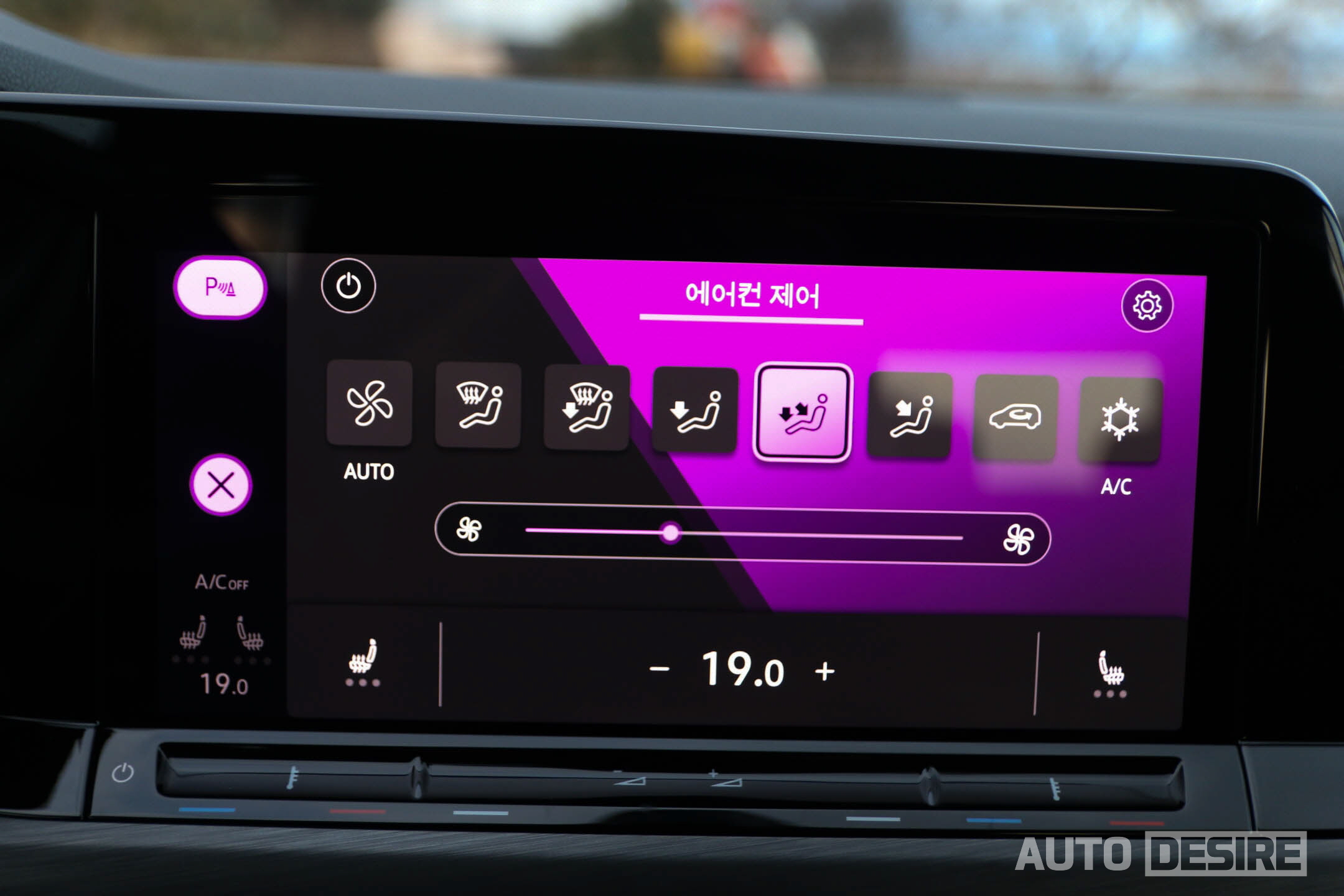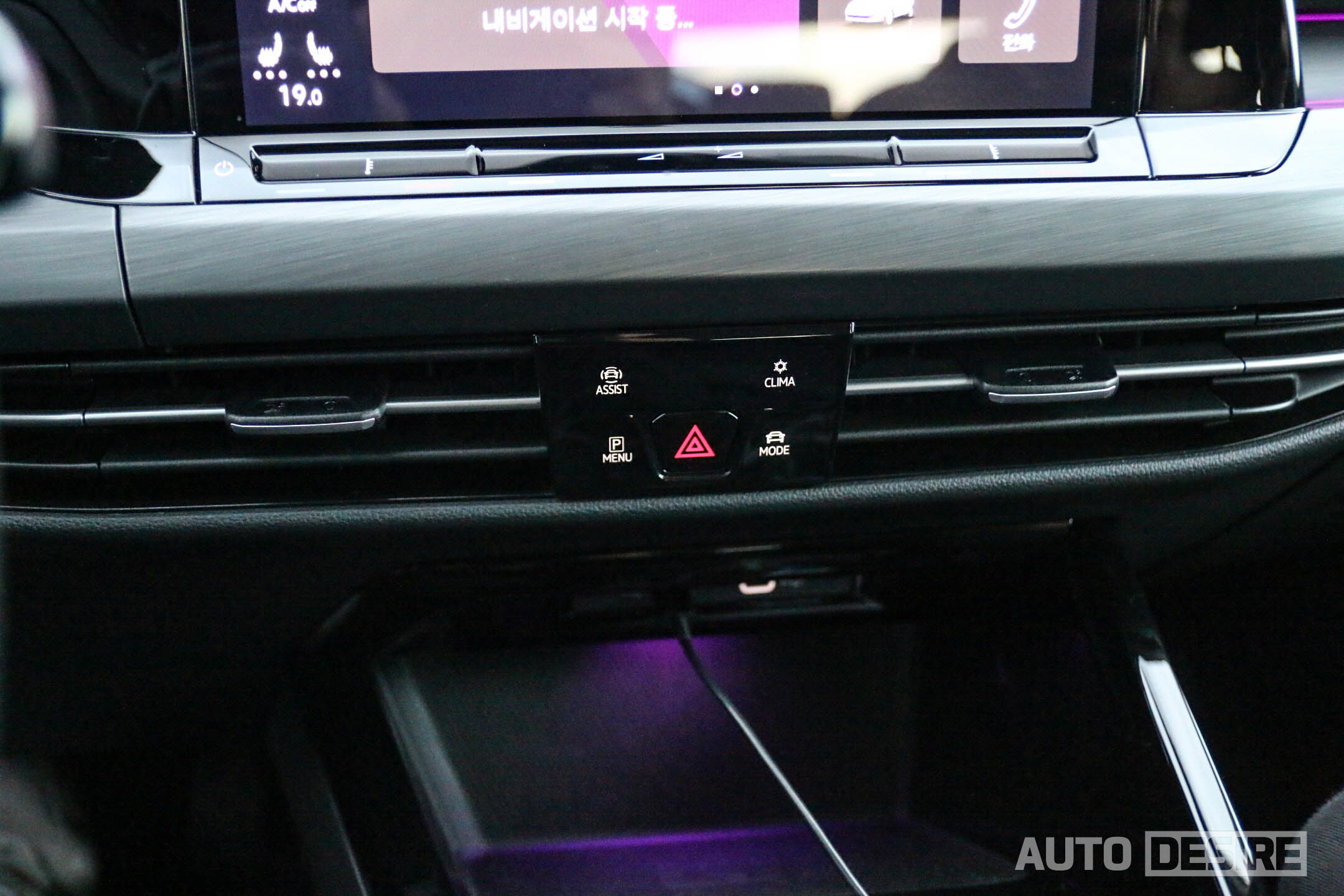 송풍구 중앙에 주행 보조, 차량 주행 모드, 주차 관련 모드와 함께 공조 컨트롤 메뉴로 바로 진입할 수 있는 터치 버튼을 남겨두어서 빠르게 공조 제어가 가능하도록 편의성을 유지해뒀다.