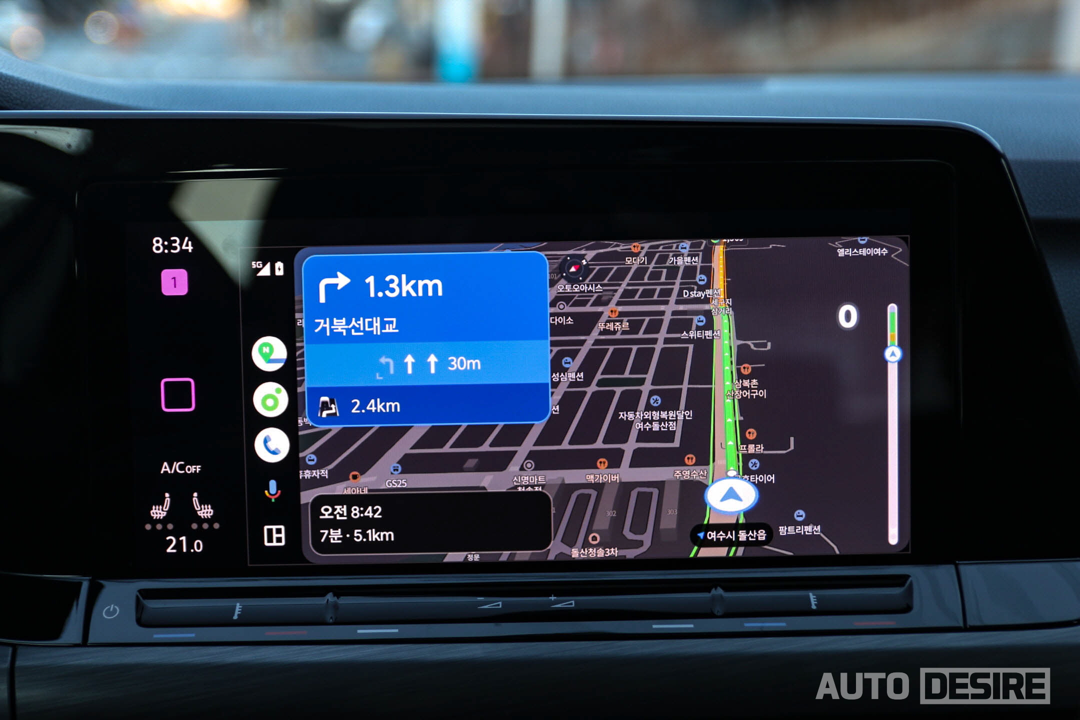 티구안을 탔을 때에도 출력에서 크게 아쉽단 느낌은 없었는데, 전륜 구동에 차체가 더 낮고 가벼운 골프에 적용되니 골프의 체급에서는 힘이 남는 풍부한 토크감과 함께 모자람 없는 출력으로 고속도로, 언덕이 많은 여수 돌산읍의 산길 도로에서도 가뿐하고 시원하게 뻗어나가는 가속감이 느껴졌다.