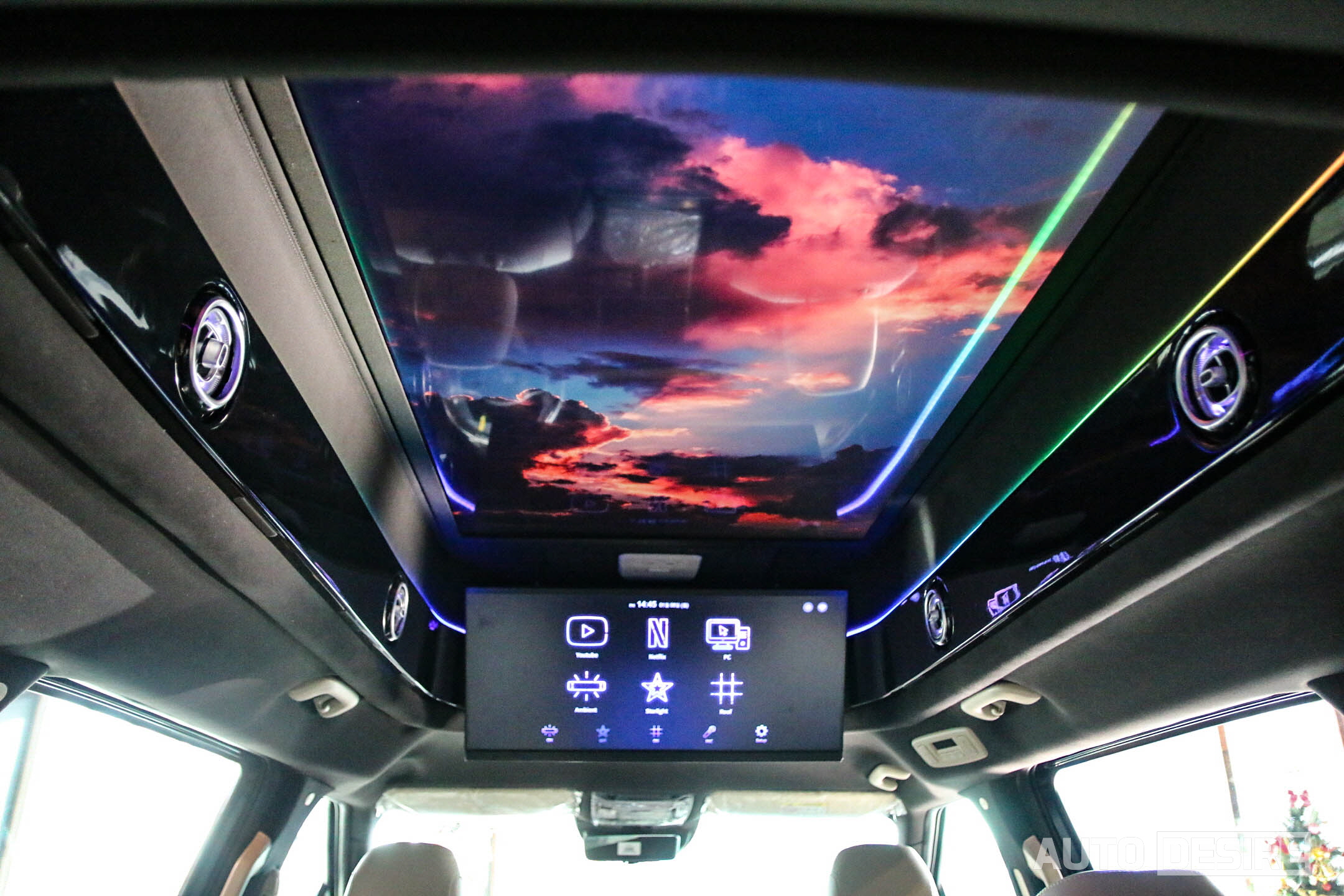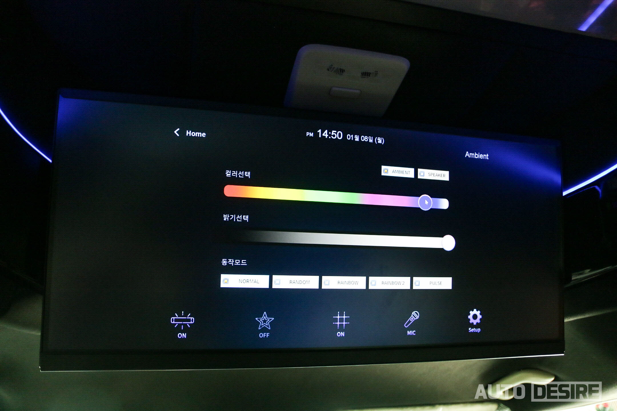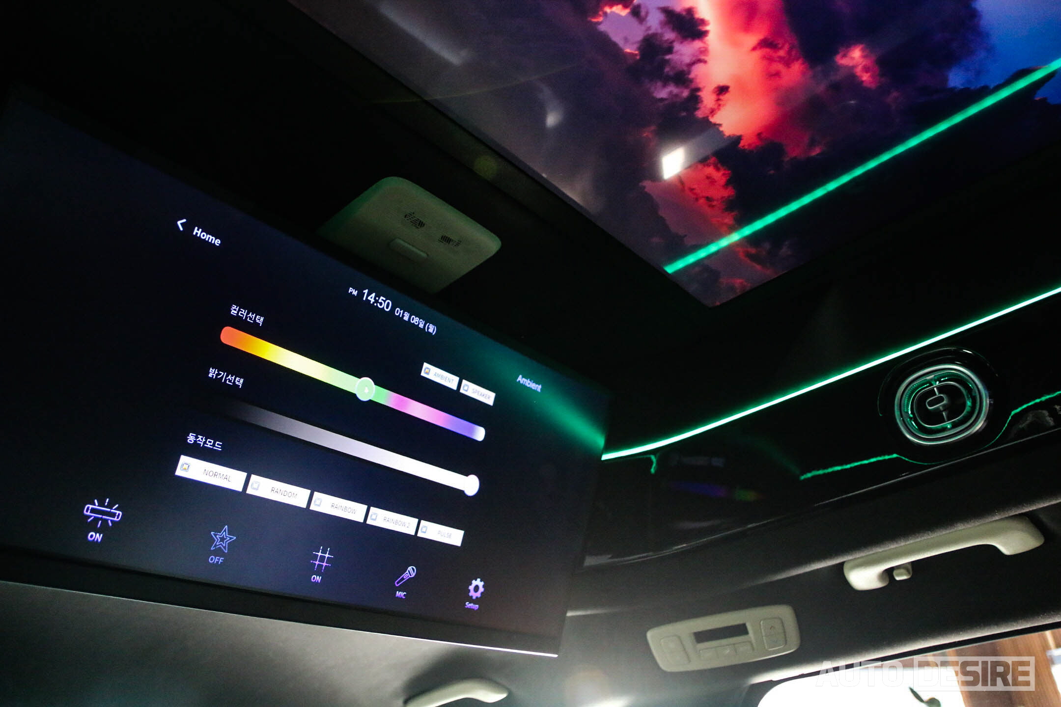 그렇다면 순정 카니발 9인승과 차별화되는 보가9 스탠다드의 차별점은? 바로 하이루프 안쪽으로 적용된 55인치 디지털 스카이뷰와 앰비언트 라이트, 29인치 와이드 모니터까지 순정 카니발에서는 만나볼 수 없는 화려한 사양을 제공한다.