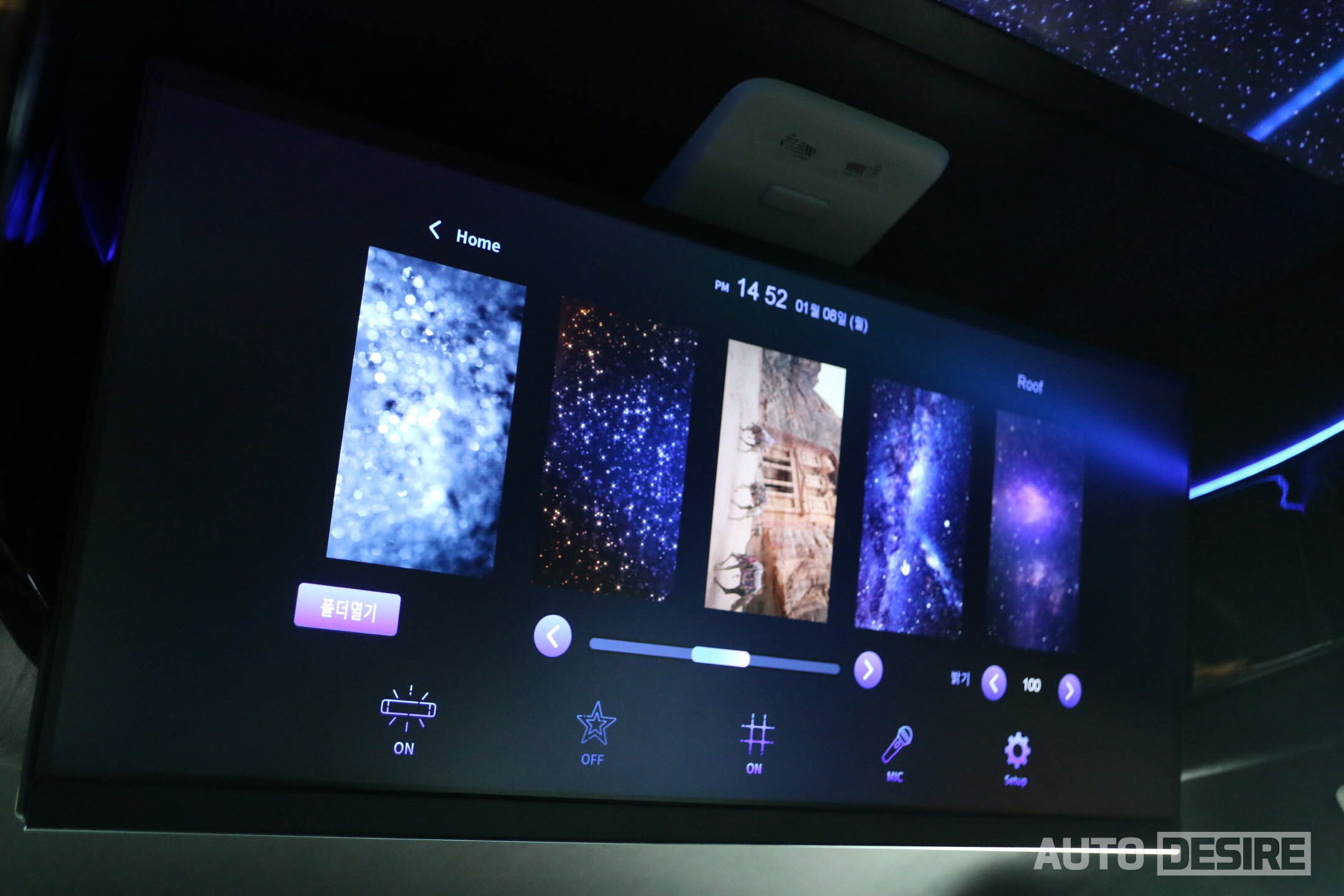 루프 상단부를 덮고 있는 4K UHD 55인치 디지털 스카이뷰는 선명한 화질로 산과 바다 같은 자연 공간을 물론 도심의 야경, 시즌별 다양한 이미지 테마를 변경해 선택할 수 있어,