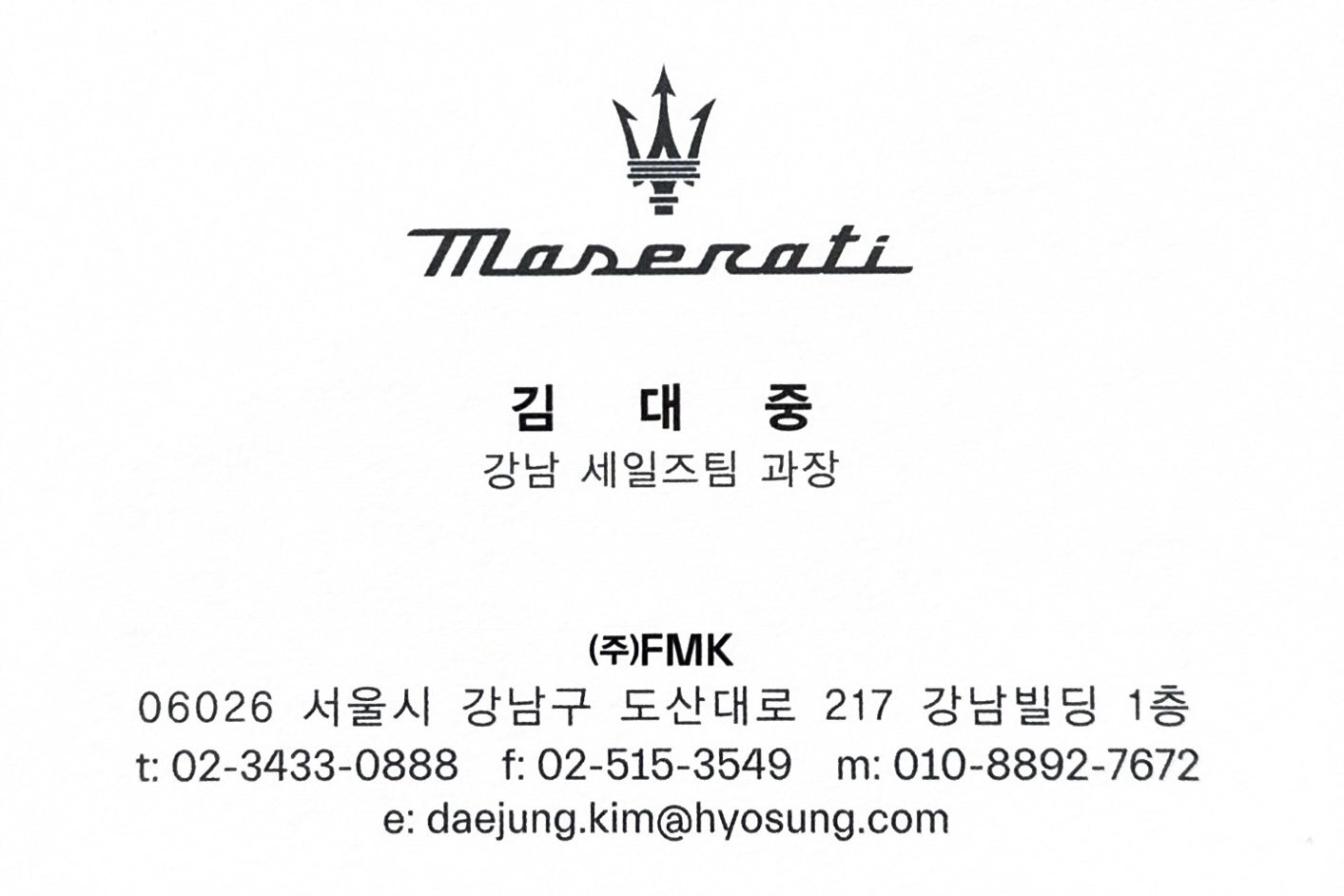 마세라티 FMK 강남전시장 김대중 과장에게,