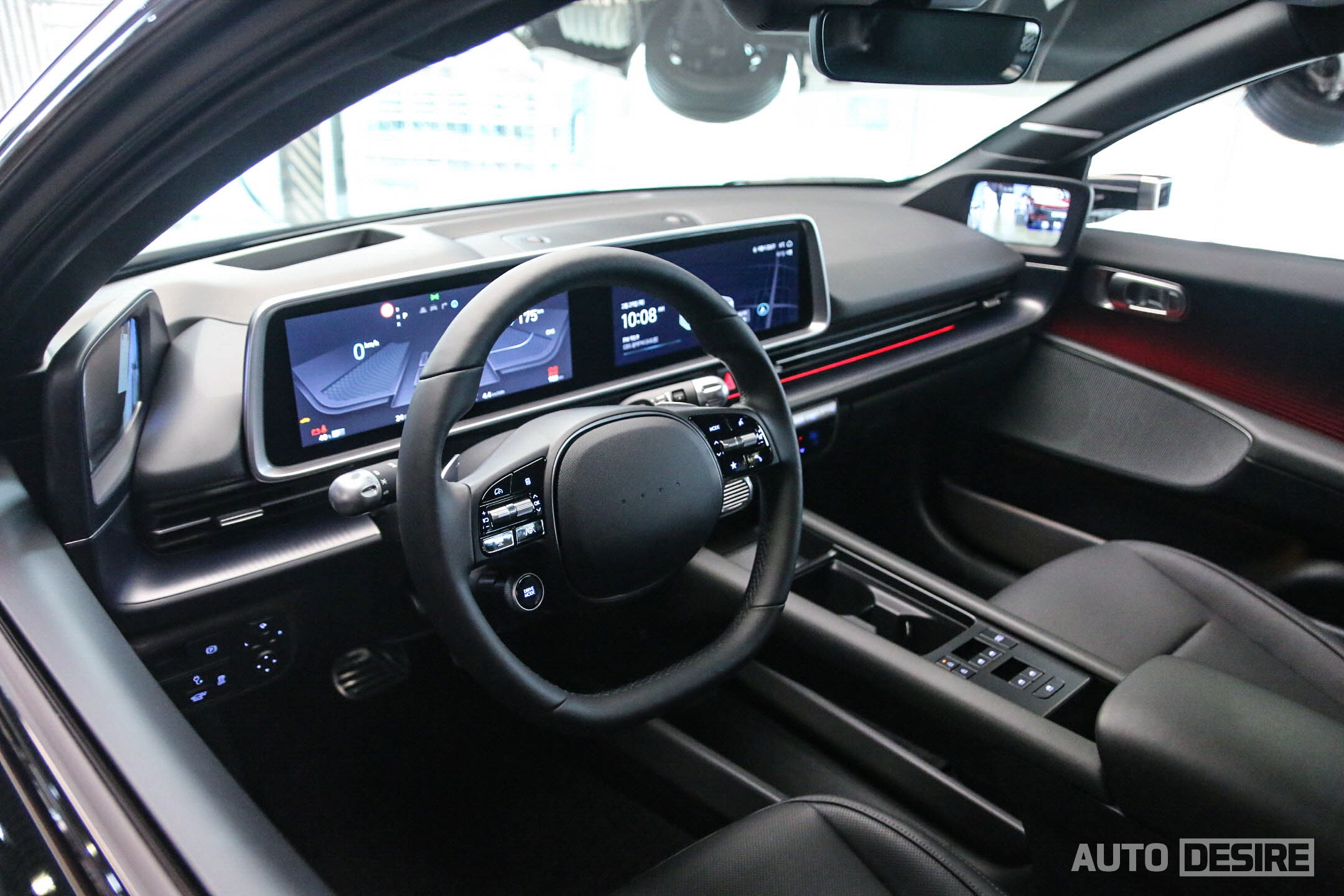 아웃사이드 미러 커버도 외장 색상에 관계없이 기본 블랙으로 적용되는데, 전시차의 경우 디지털 사이드 미러가 적용되어 해당되지 않는 모습. 투명한 커버 부분을 좀 더 다크 하게 처리하거나, 카메라 렌즈를 감싸는 커버 부분까지 블랙으로 적용했다면 더 일체감 있는 구성이 되지 않았을까 싶다.