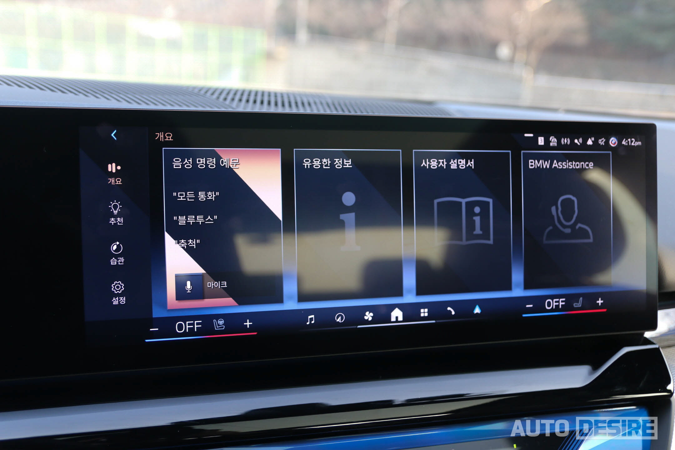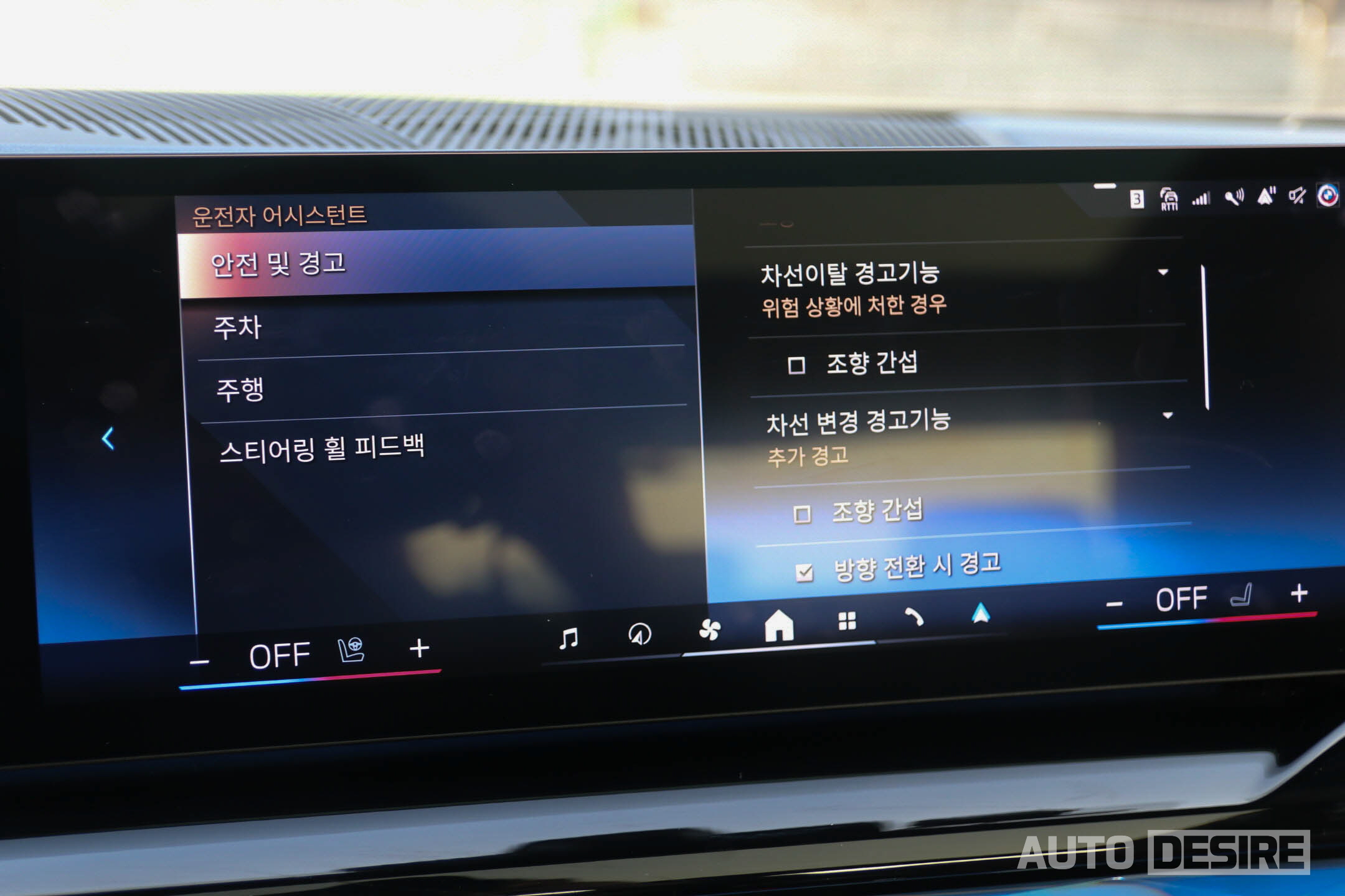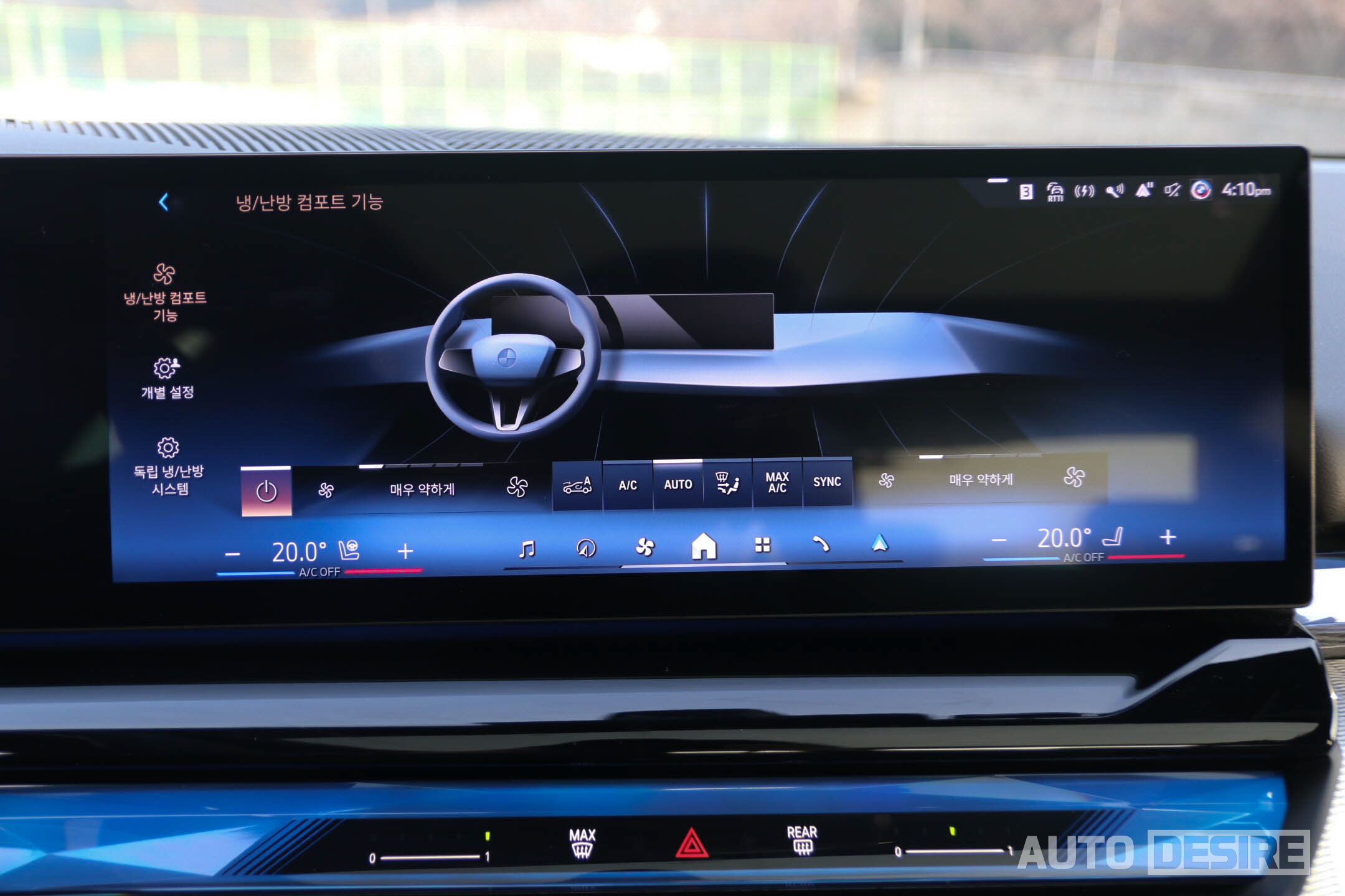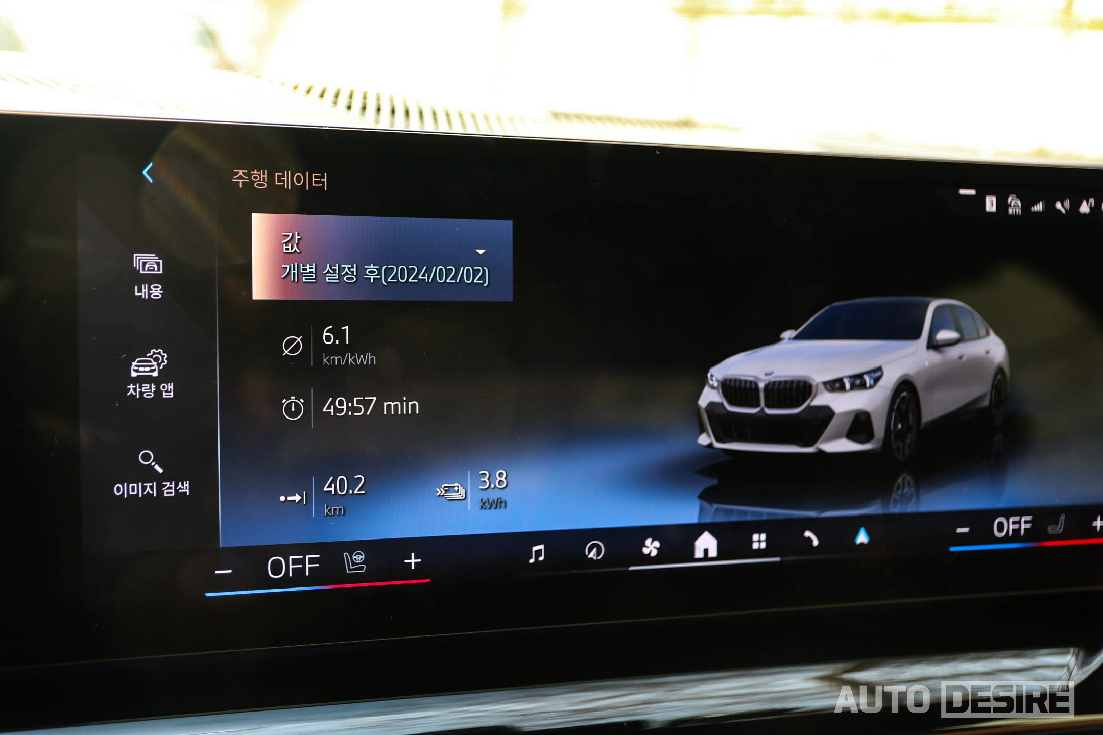 다만, 사용성이 이전보다 나아진 공조 컨트롤러는 송풍 기능이 켜져 있지 않으면 시트 열선/통풍 및 스티어링 휠 열선이 작동되지 않는 아쉬움을 남겼는데, 내연기관 5시리즈와 다르게 i5에만 이렇게 적용한 것으로 보인다.