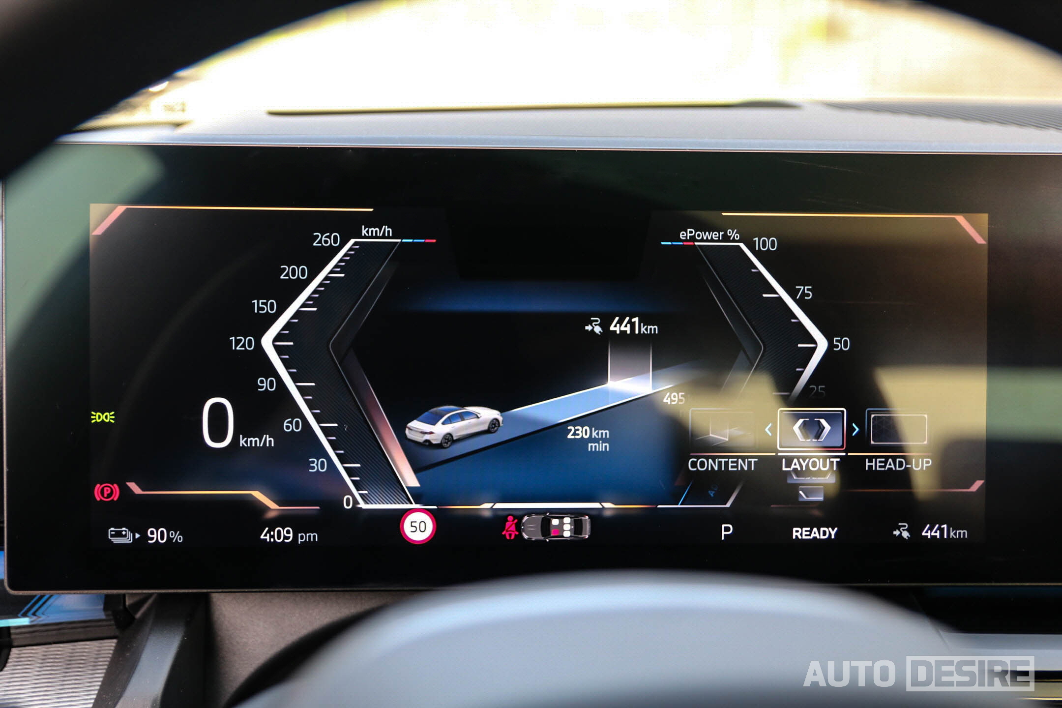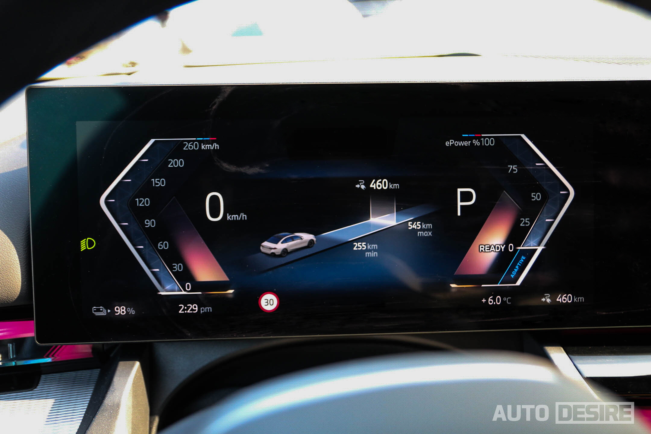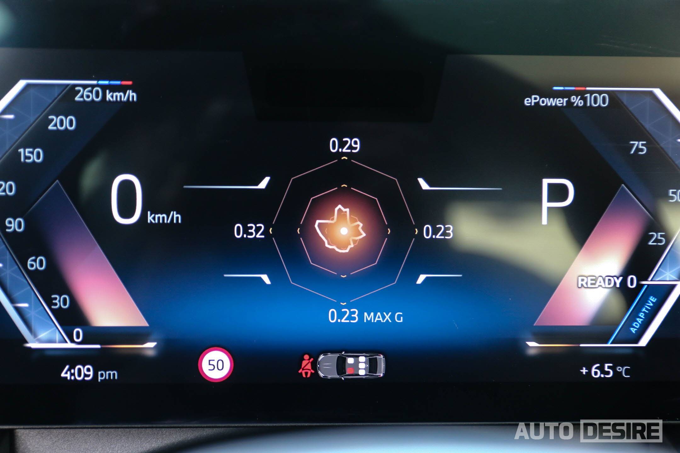 운전석 12.3인치 디지털 클러스터는 다른 최신 BMW 모델들과 동일하게 3가지의 테마를 제공하며, 중앙의 정보창을 통해 증강 현실 기능 및 내비게이션 지도 연동 표시, G-미터 표시 등 편의성과 함께 BMW, 그중에서도 'M 스포츠' 모델 다운 정보까지 함께 전달해 준다.