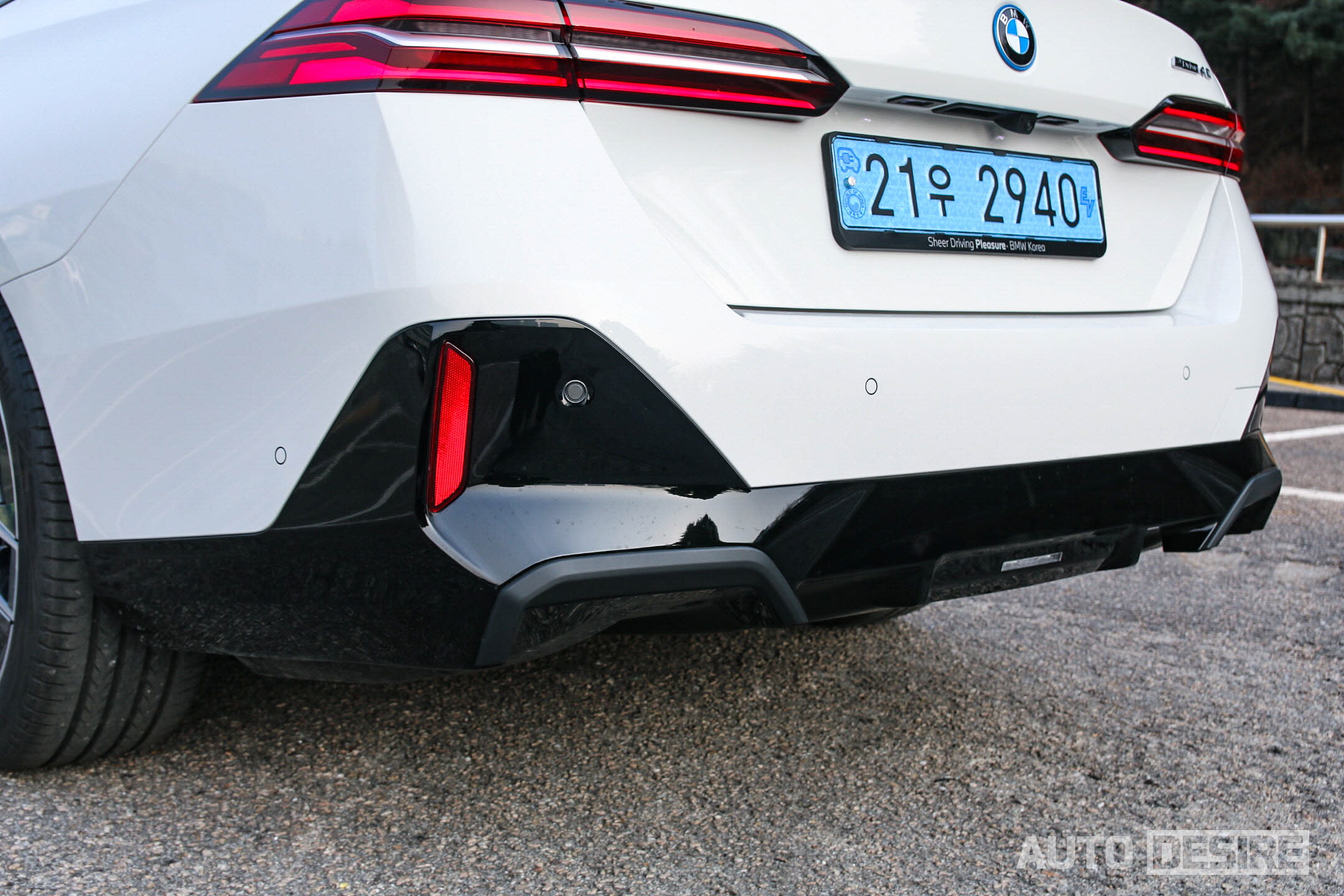 후면에서도 전-측면에서 오던 날카롭고 스포티한 인상의 기조가 이어진다. 후면 높게 위치한 리어 콤비네이션 램프는 정직한 수평형 배치에 구형보다 한층 더 슬림하고 날카롭게 달라져 안정적이면서도 선명한 인상을 주고, 범퍼 하부의 리어 디퓨저 및 패널은 유광 블랙 컬러로 덮어 강한 대비감을 주면서 머플러 팁 부분의 형태를 남긴 리어 디퓨저 스타일로 스포티한 느낌을 더해주는데, M60 모델과 동일하게 eDrive40 M 스포츠에도 머플러 팁의 흔적 없이 와이드한 리어 디퓨저 형상을 넣는 것이 더 깔끔하게 보일 것 같기는 하다.