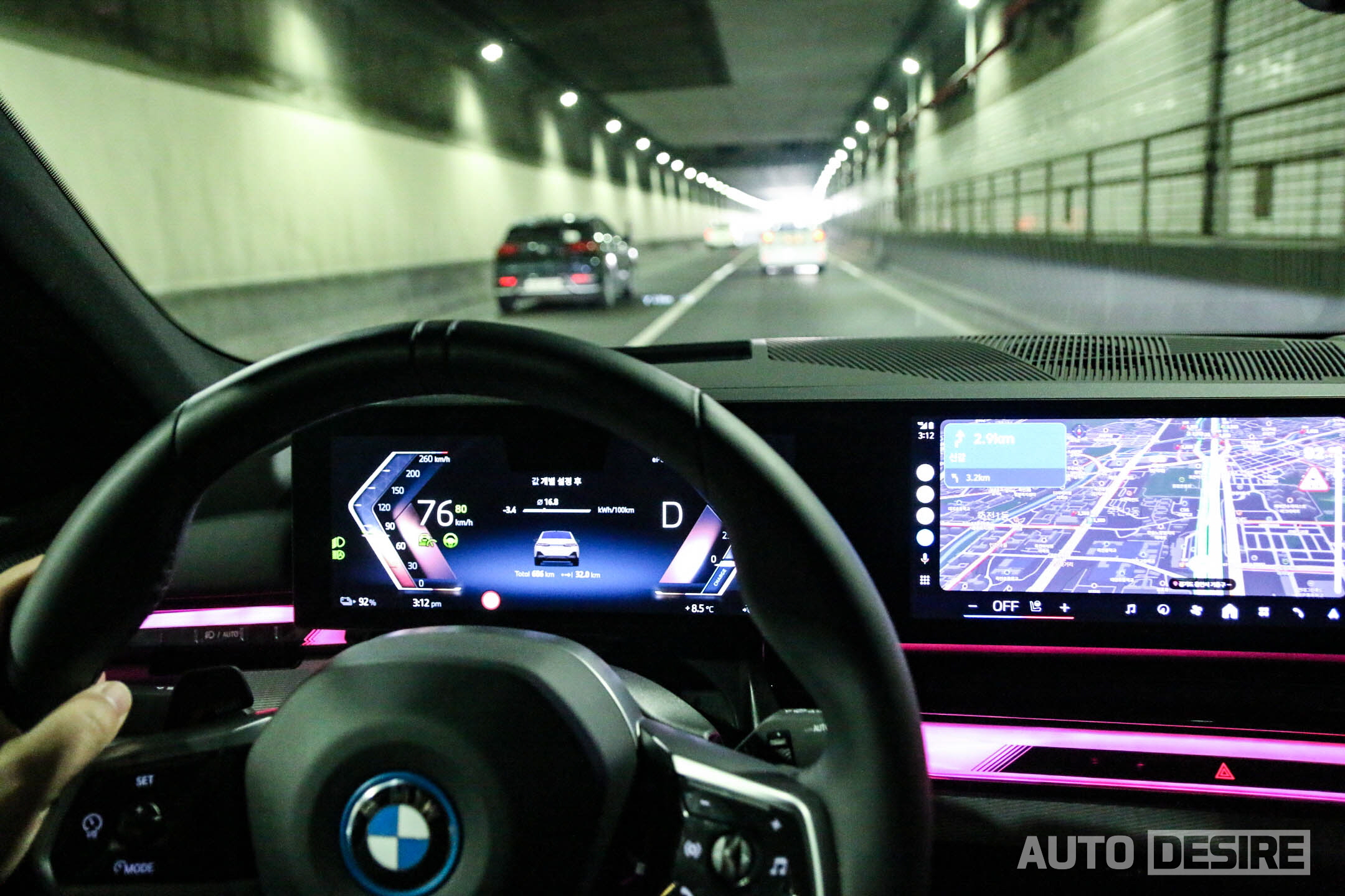 주행 모드 선택에 따라 각각 차이가 있긴 하지만 전반적으로 스티어링 휠의 조향감도(반응성과 별개로) 가벼워진 것이 체감될 정도고, 서스펜션의 감각도 타이트하게 하드한 느낌보다는 출렁거리지 않는 선에서 부드럽고 컴포트한 성향으로 크게 달라진 느낌이다. 다만 전기차인 i5의 경우 내연기관 버전보다 자체 중량이 무겁고, 배터리로 인한 무게 중심 자체가 다른 덕분인지 상대적으로 주행 시 더 낮게 깔린 무게감이 있기는 하다.