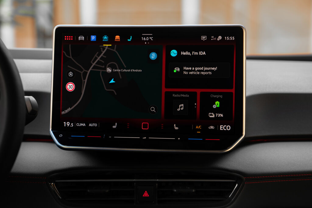 센터패시아에는 12.9인치 대화면 터치스크린에 새롭게 디자인을 다듬은 인포 시스템이 적용되며, 스크린 하단으로 기본 ID.3와 동일하게 터치 슬라이드 방식으로 공조 온도 제어 기능이 적용된다. 이 외 공조 시스템은 별도 메뉴에서 제어가 가능하고, 인포 시스템은 챗GPT 기반의 음성 비서 기능을 제공해 직접 터치로 조작 외에도 음성인식으로 주요 기능들을 제어할 수 있게 했다.