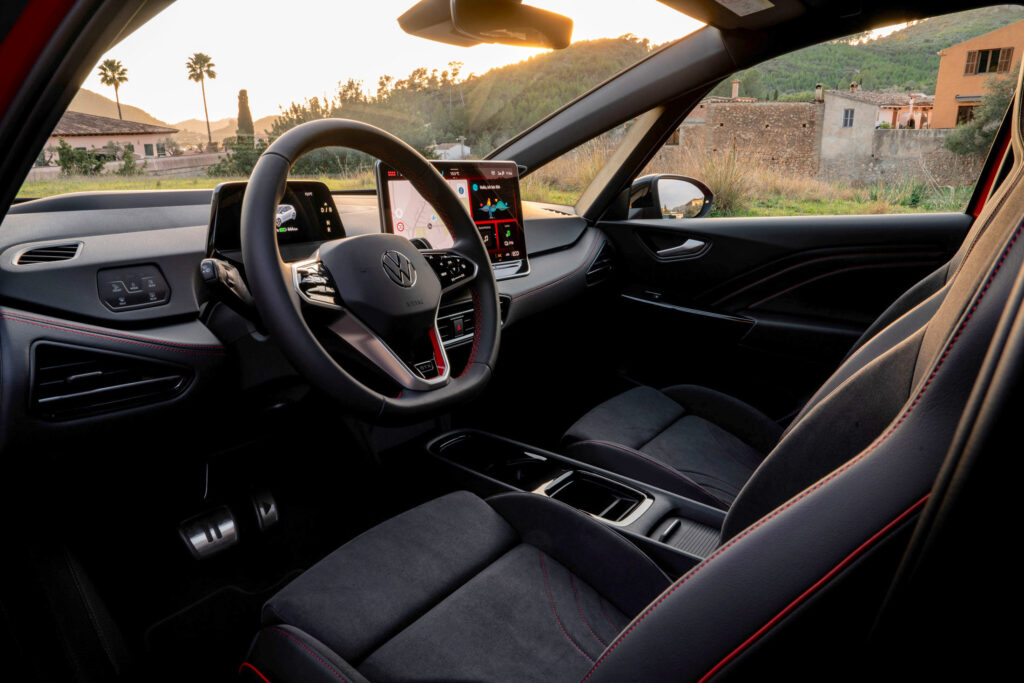 외관 역시 핫해치 성향에 맞게 범퍼, 휠 등 주요 부분들을 새롭게 손봐 ID.3 기본 모델 대비 더 날카로운 사다리꼴 형상에 메시 패턴이 적용된 프런트 에어 벤트 디자인과 에어커튼 부분에 V 형태의 수직형 시그니처 라이팅이 더해졌다. 또 블랙 사이드 미러 커버와 블랙 투톤 루프를 적용하고, 시원하게 쭉 뻗은 5-스포크 '스카겐' 디자인 휠로 스포티한 감각을 높인다. LED 매트릭스 헤드라이트는 옵션으로 제공된다.