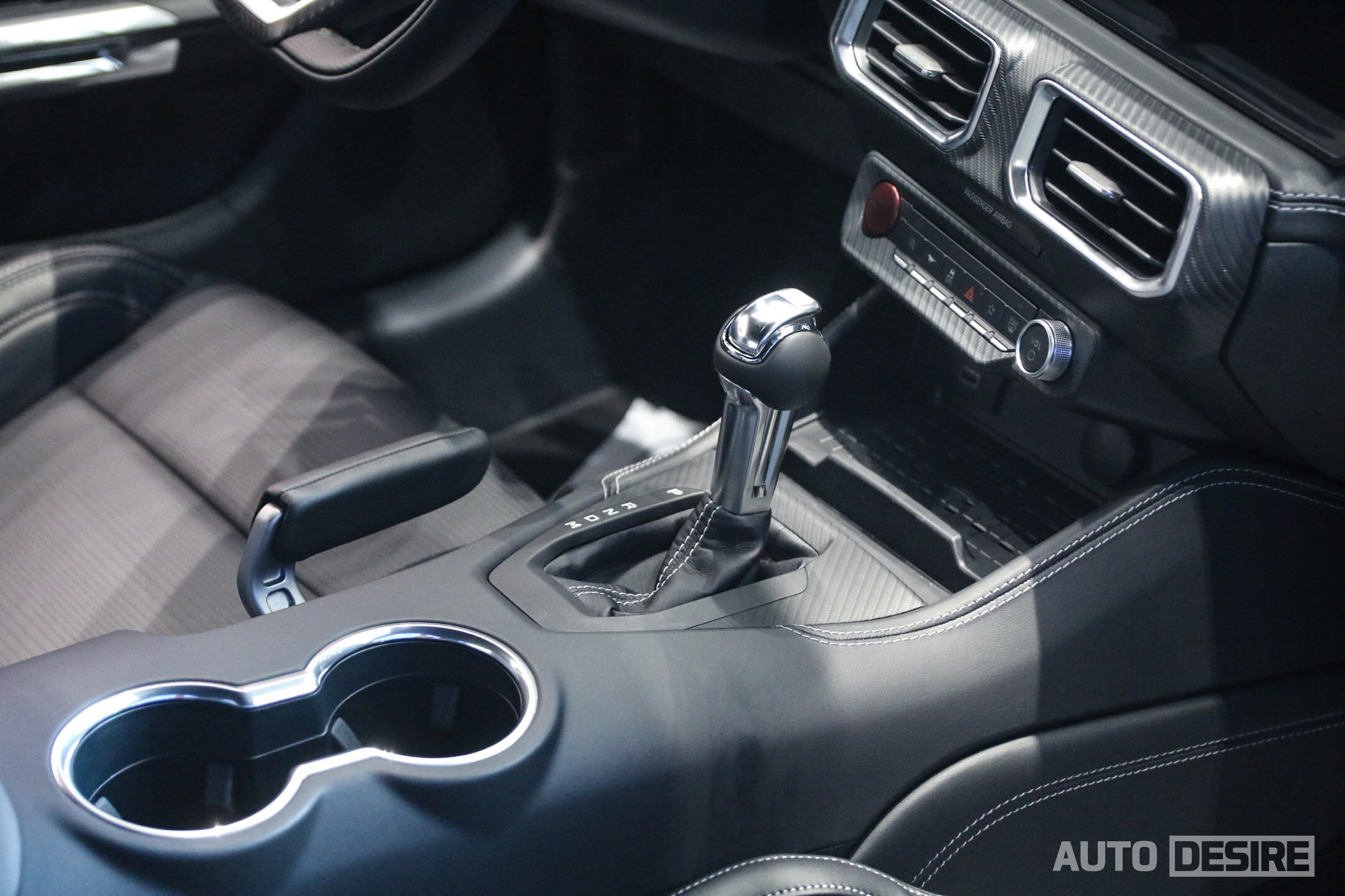 센터패시아 최하단에는 스마트폰 무선 충전 시스템과 USB C 타입/A 타입 충전 및 데이터 포트가 위치, 센터 콘솔에는 전 세대 모델과 흡사한 디자인의 기어 셀렉터와 함께 이번 머스탱에서 운전의 즐거움을 더 높여줄 '드리프트 브레이크' 기능이 포함된 전자식 파킹 브레이크 레버가 위치한다.
