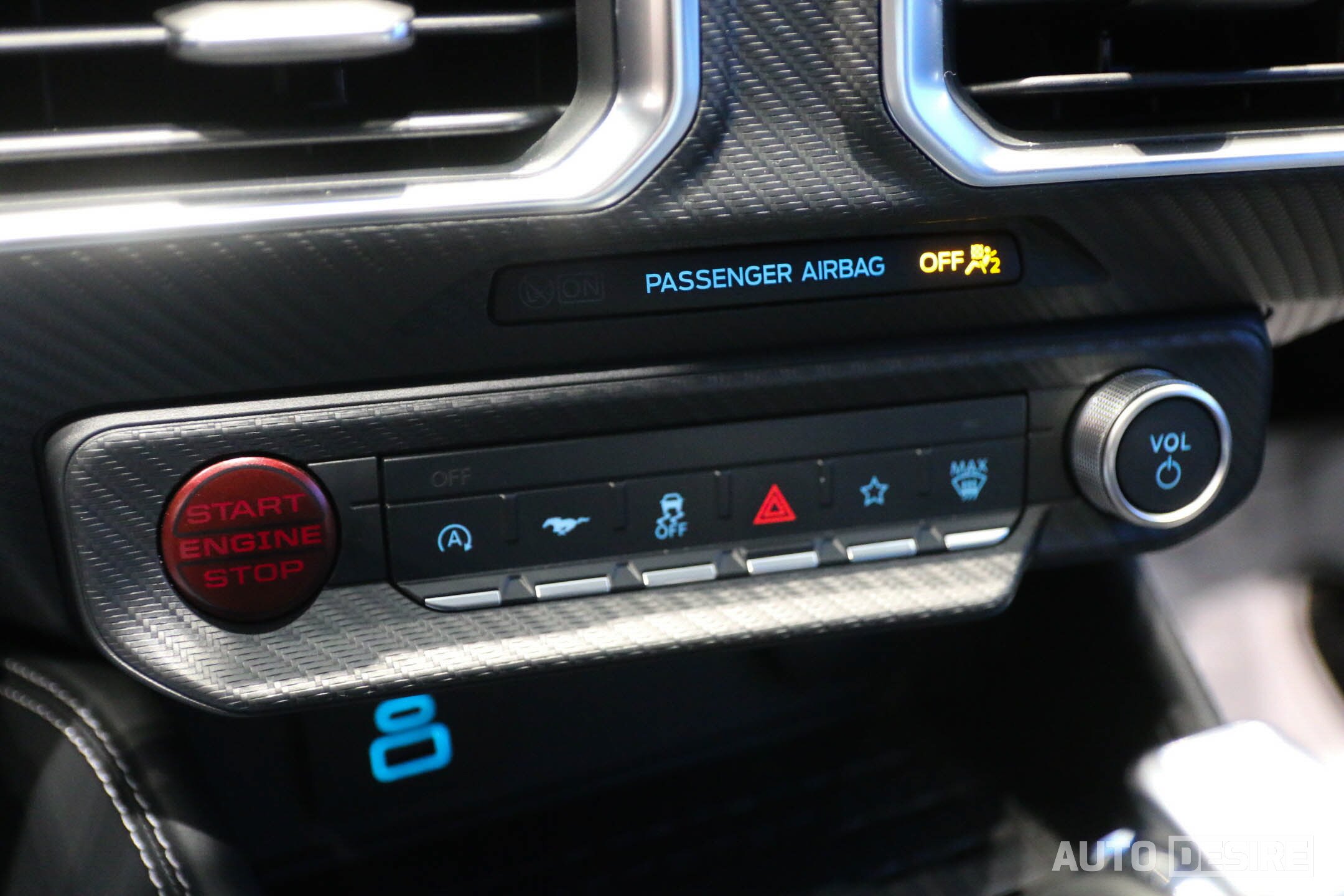 공조 장치가 센터 스크린으로 통합되면서 스크린 하단으로 이동한 송풍구 아래로는 시동 버튼과 스탑앤고, 주행모드 변경, 자세 제어 장치와 비상등, 즐겨찾기, 앞유리 디포그, 볼륨 조절 버튼 등 필수적인 버튼만 남겨서 깔끔하게 구성했고 스타트 버튼은 빨간색으로 만들어 여기에도 스포츠 감성을 더한다.