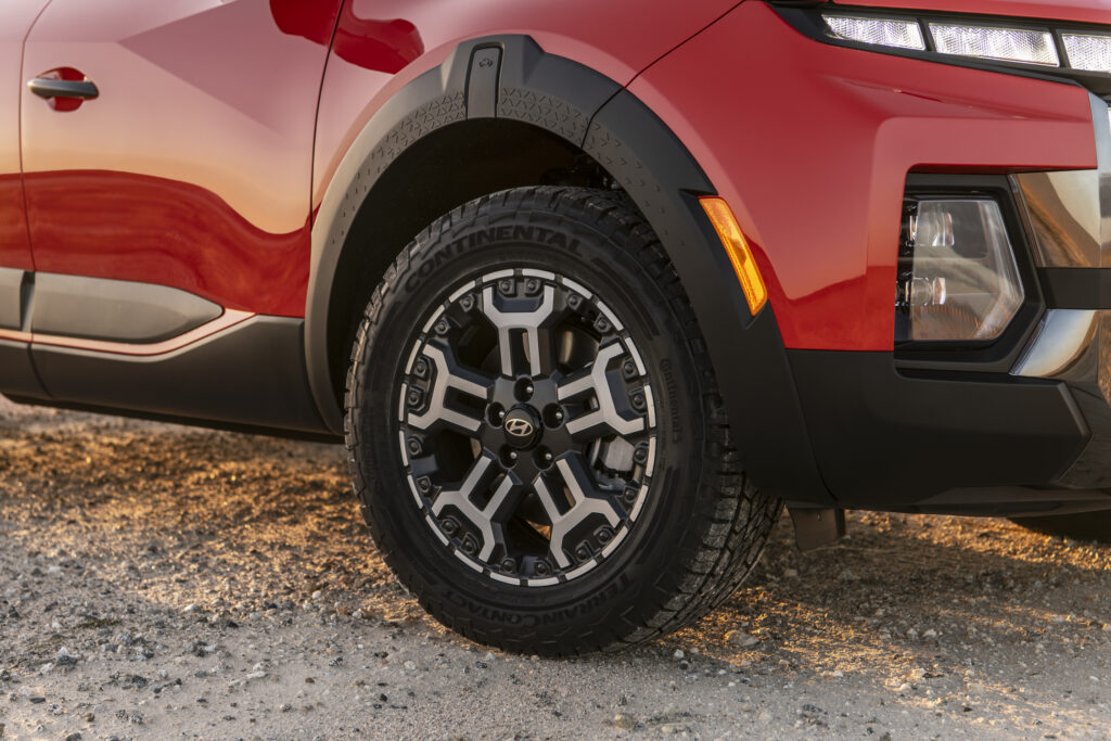 싼타크루즈가 정통 픽업트럭은 아니지만, 그래도 오프로드 콘셉트를 가진 XRT 트림에는 무광 블랙 컬러의 현대 엠블럼과 라디에이터 그릴, 빨간색 견인 고리, 다크한 컬러의 스키드 플레이트, 블랙 사이드 미러 커버, 휠 아치와 도어 하단부를 더 두껍게 덧댄 클래딩을 추가하고, 마치 스패너를 연상하게 하는 XRT 전용 18인치 휠과 245/60R 18 사이즈의 올 터레인 타이어를 장착했다.