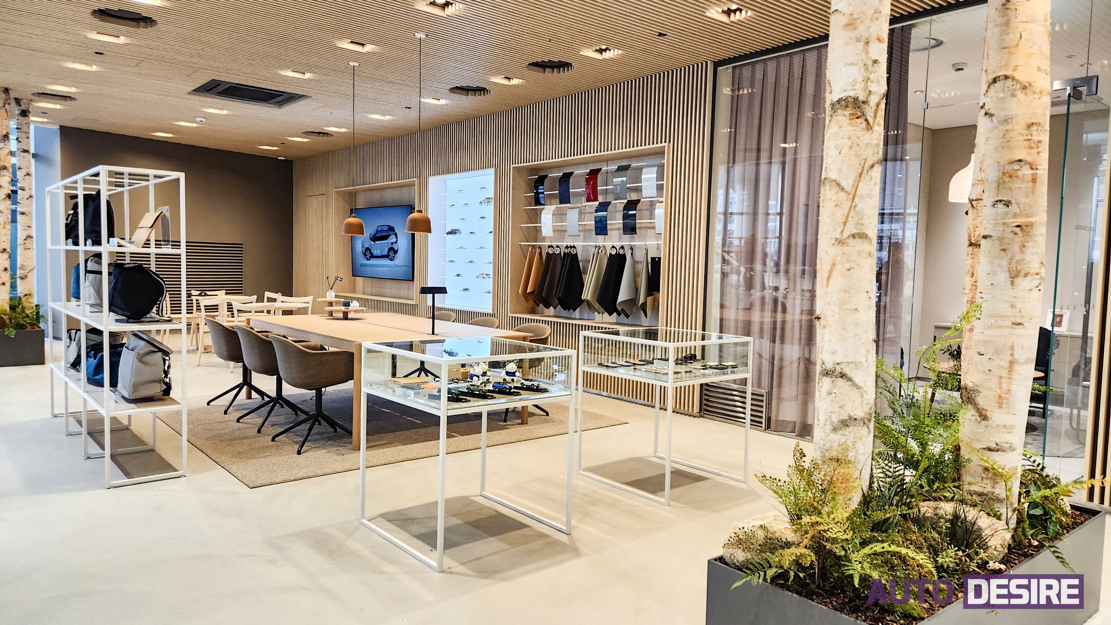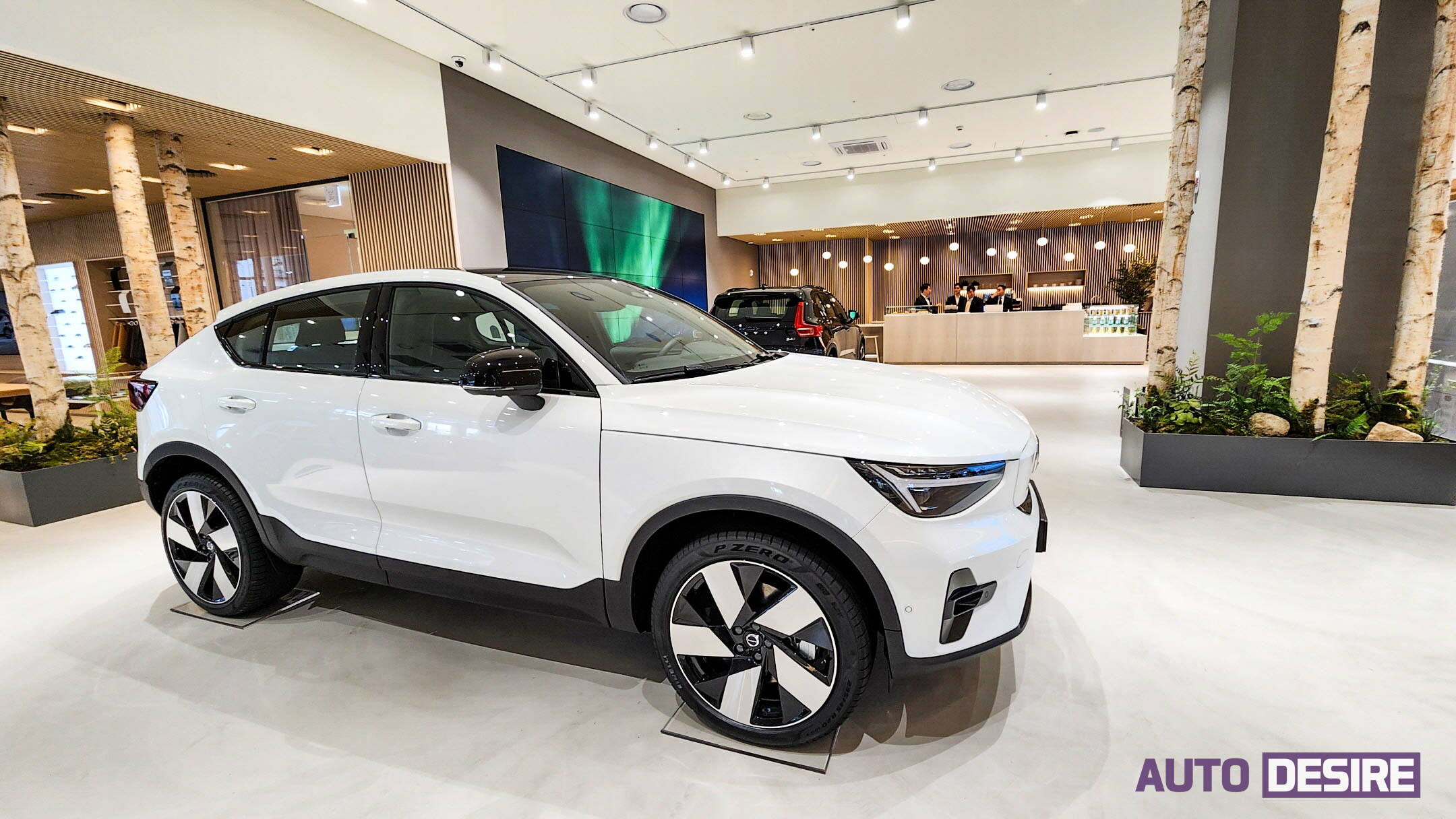 볼보자동차의 다양한 차량 전시뿐만 아니라 고객 라운지와 상담 공간도 스웨덴에서 직접 수입한 북유럽 조명과 애쉬우드 마감으로 따뜻하고 자연 친화적인 분위기를 전하며, 페인트와 각 자재, 가구들도 지속 가능한 소재로 배치하고 영업 과정에서도 종이가 아닌 디지털 기기 사용을 통해 지속 가능성 가치를 내부 공간 곳곳에 반영했다고 한다.