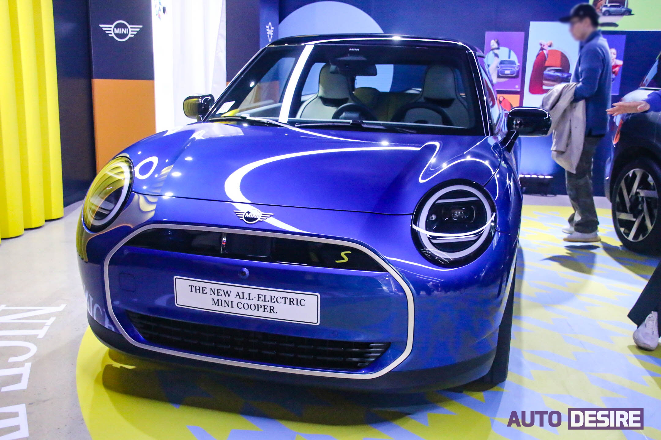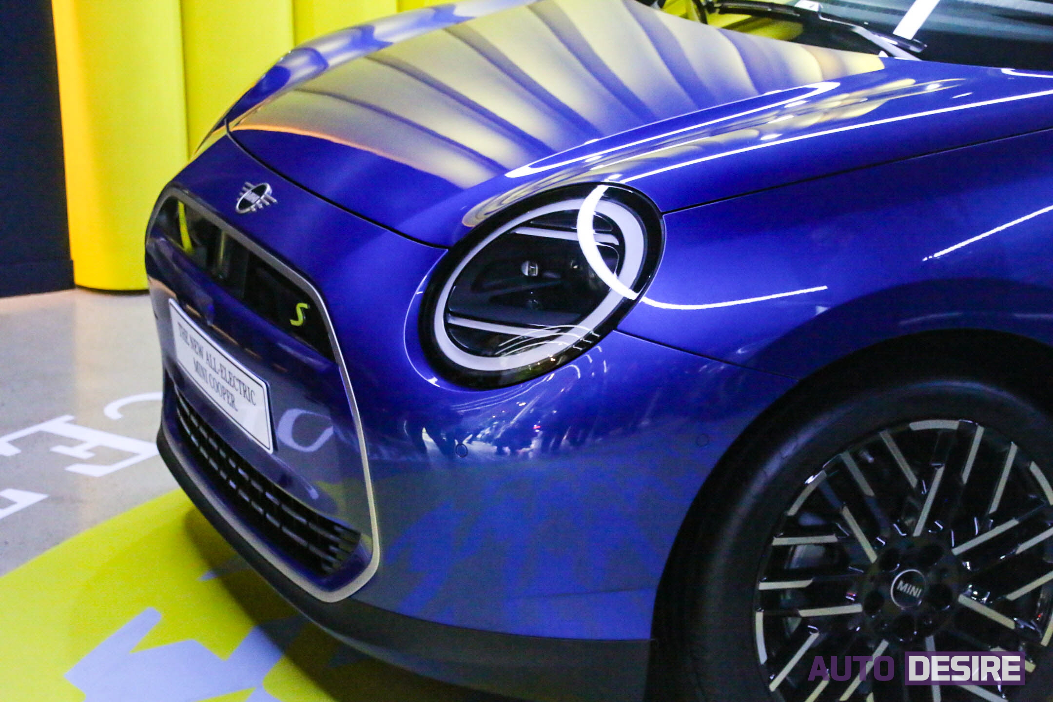 프런트 그릴 라인은 8각 형태로 더 큼직해지면서도 내부 패턴/표면은 깔끔하게 정리되었고, 이 그릴 외에 범퍼에는 안개등이나 다른 에어벤트, 에어커튼 디자인 없이 심플하고 매끄러운 모습을 보여준다. 여기에 전기차 모델임을 드러내는 형광 노란색 'S' 엠블럼이 포인트로 들어간다. 원형 LED 헤드램프의 '시그니처 LED 라이트' 주간 주행등은 오너의 취향에 맞게 외부 써클만 드러내는 클래식 모드, 써클과 내부의 직선 두 줄까지 모두 나타내는 페이버드 모드, 써클 없이 내부 직선 두 줄만 나타내 역동적인 느낌을 주는 JCW 모드까지 총 3가지 그래픽을 고를 수 있다.