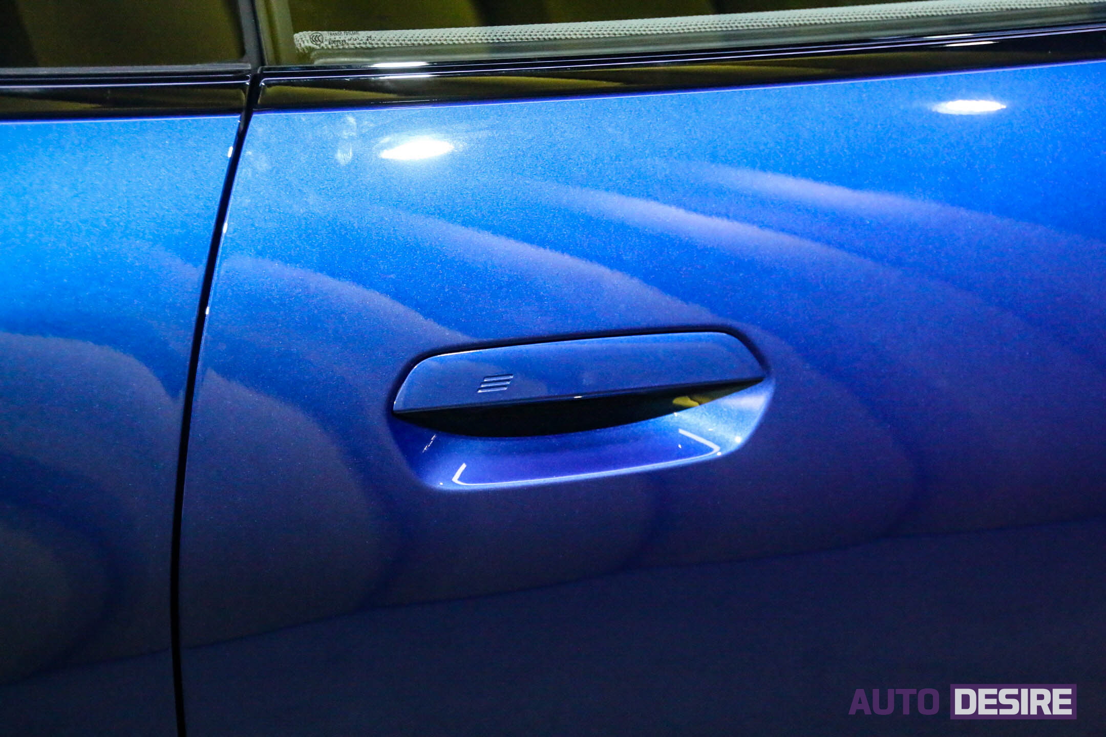 크게 묶어 보면 7-트리플 스포크 타입으로 적용된 18인치 멀티 스포크 휠(페이버드 트림 적용)에는 실내의 앰비언트 라이트에도 적용된 것과 같은 패턴으로 미니멀한 바디 디자인과 대비되는 화려한 인상을 준다.