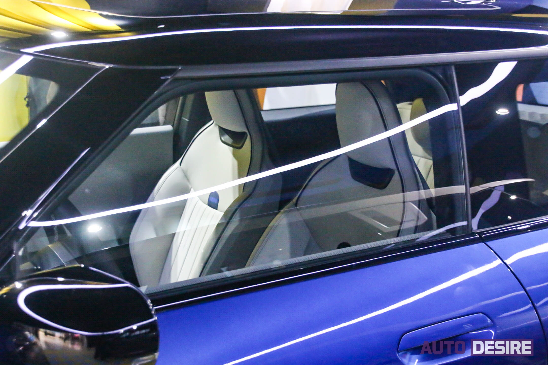 같이 전시되어 있던 신형 컨트리맨과 다르게 해치백 일렉트릭은 문이 잠겨있는 상태로 실내까지는 살펴볼 수 없었지만, 전시차 기준으로 현 JCW 시트와 같이 헤드레스트가 일체형의 JCW 베이지 스포츠 시트가 적용되어 화사한 인상을 전해줬고,