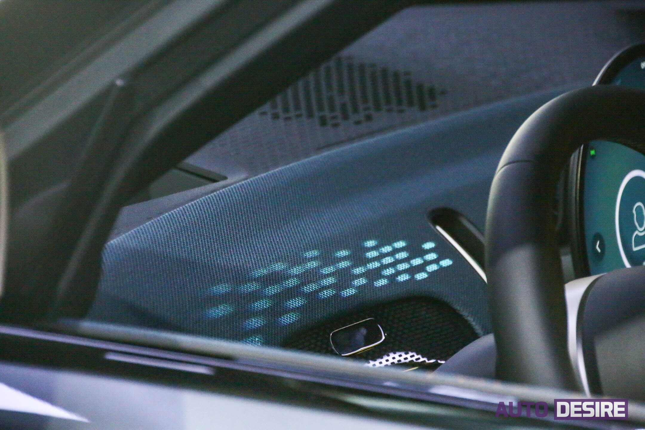 기존에 스티어링 휠 칼럼에 있던 계기판은 삭제되었지만, 컴바이너 타입 헤드업 디스플레이를 통해 주행 관련 정보를 운전자가 쉽게 확인할 수 있게 했고, 대시보드는 재활용 폴리에스테르를 활용한 니트 마감재를 적용해 포근한 이미지와 함께 지속 가능성까지 반영했다.