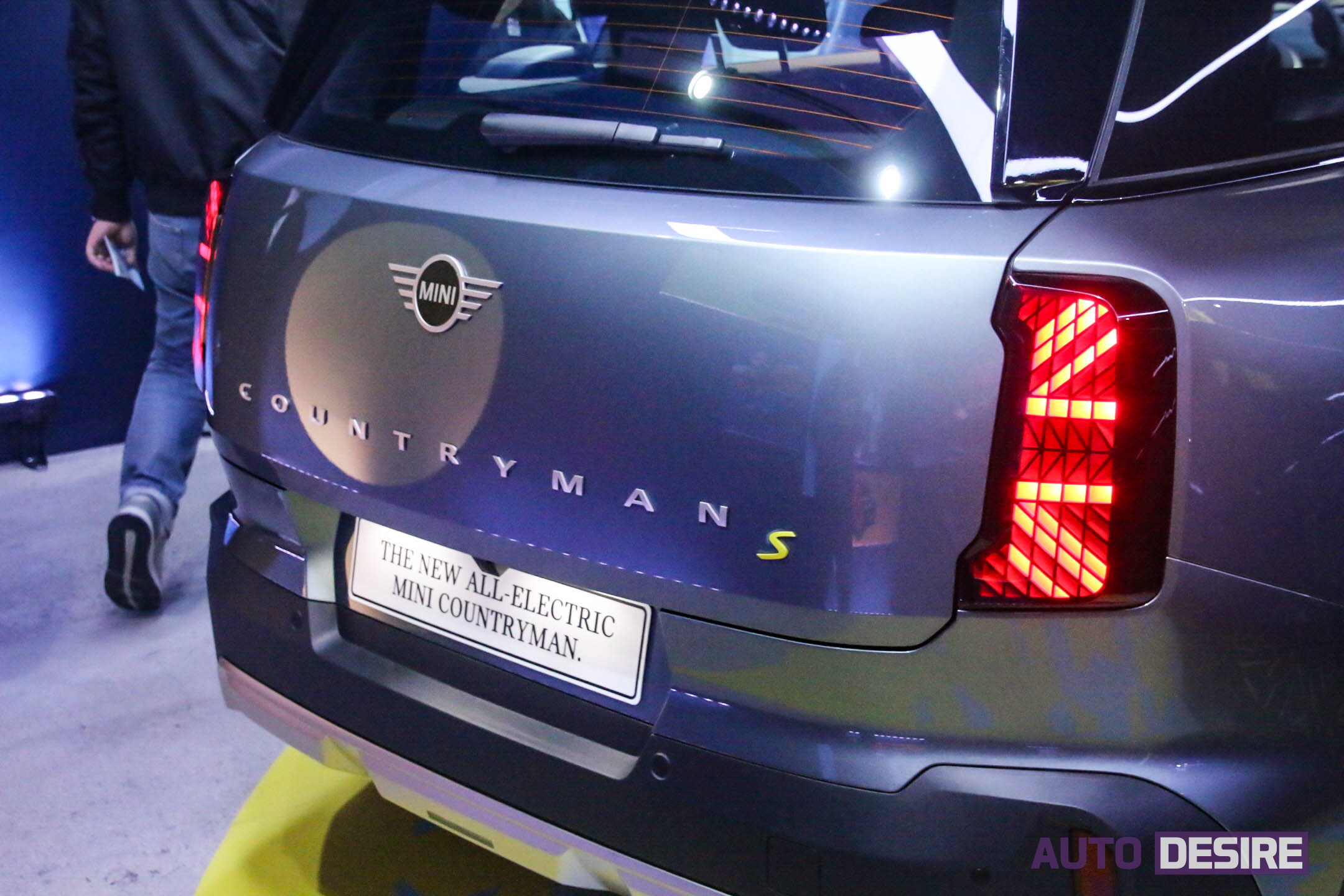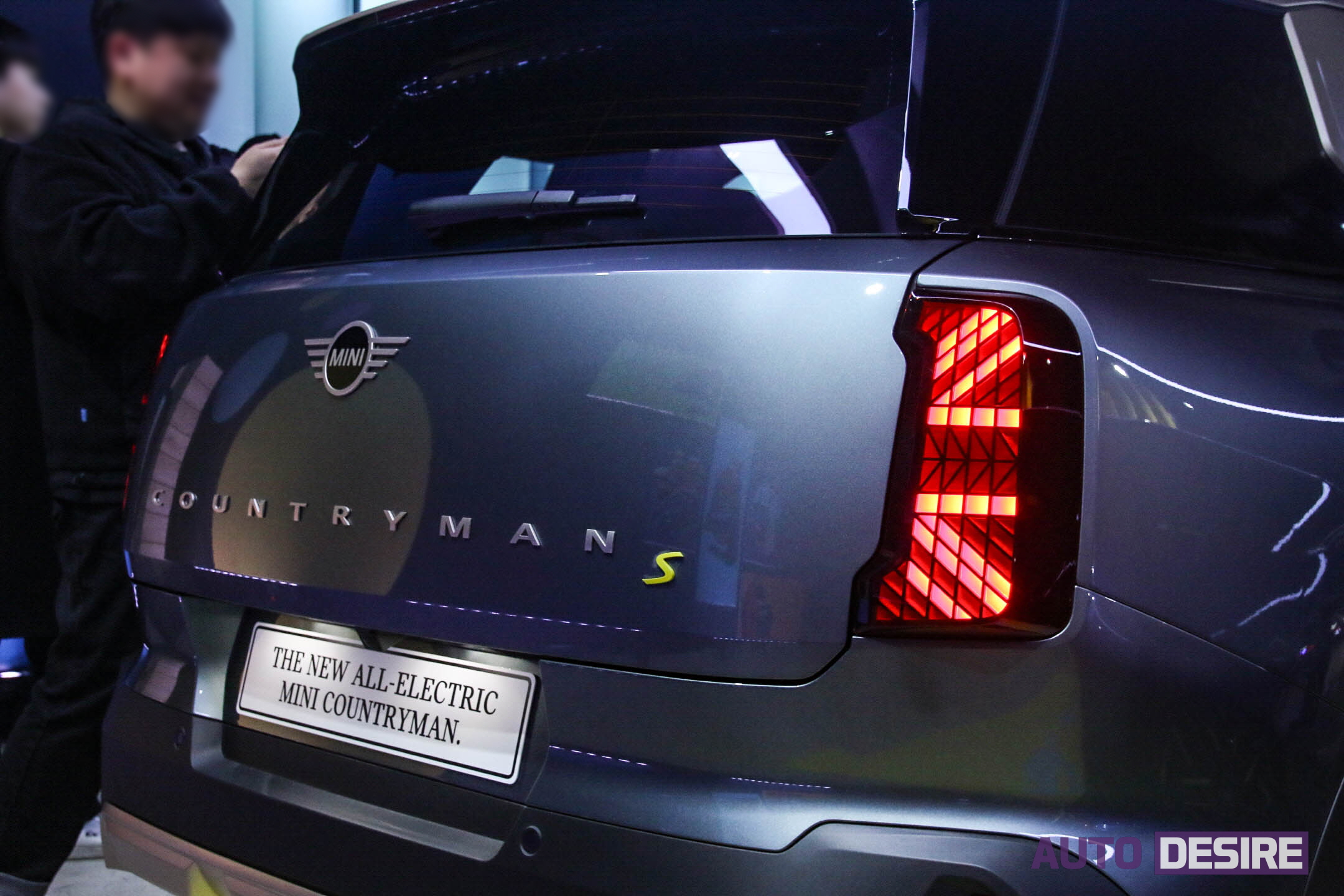 후면에서는 살짝 C자 형태로 꺾인 수직형 리어 콤비네이션 램프에 해치백 모델과 동일하게 유니언잭 패턴의 클래식과 페이버드, JCW까지 세 가지 그래픽을 선택할 수 있는 '시그니처 LED 라이팅'이 적용된다. 와이드한 테일게이트에 컨트리맨 레터링과 함께 형광 노란색 'S' 엠블럼, 미니 윙 엠블럼이 부착되고, 범퍼에는 수직형 리플렉터와 입체감을 살린 스키드 플레이트로 뒷모습까지 탄탄한 느낌으로 마무리한다.
