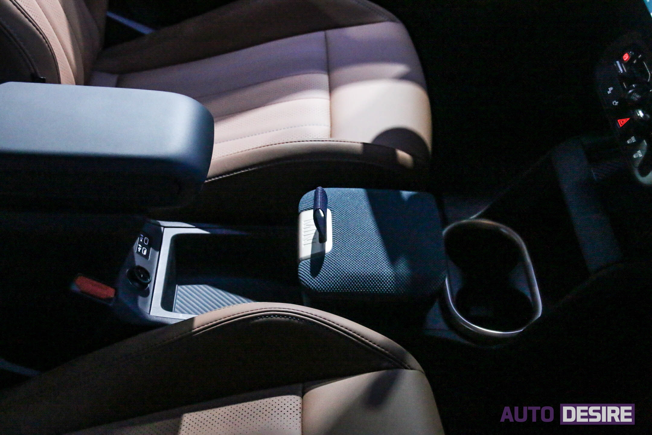 스티어링 휠은 하단 스포크를 패브릭 스트랩으로 적용한 3-스포크 스포츠 스티어링 휠로 적용되고, 센터패시아 하단으로 기어 셀렉터를 비롯한 시동 버튼과 비상등 등 주요 버튼들을 간결하게 정리하면서 센터 콘솔 공간이 굉장히 넓어진 모습이다. 스마트폰 무선 충전 시스템과 함께 USB 충전 포트도 모두 C 타입으로 변경된 모습.