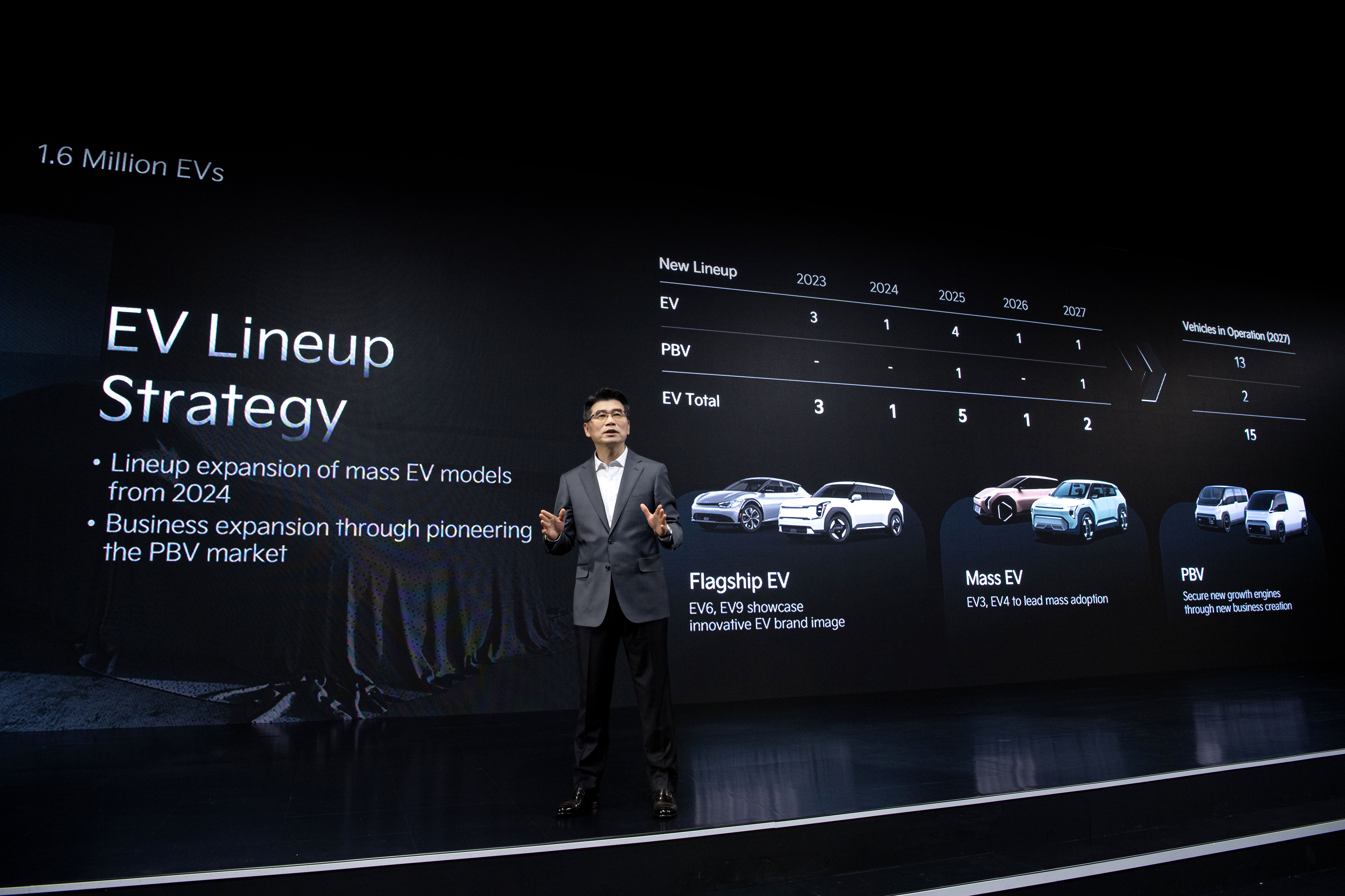 세 번째로 기아만의 차별화된 PBV를 선보여 미래 모빌리티 시장을 선도할 계획으로, 내년 중 첫 중형 PBV인 PV5를 출시해 PBV 사업을 본격적으로 전개, 이후 대형 모델인 PV7도 2027년 출시하면서 2030년까지 PBV 차량 총 25만 대를 판매할 것으로 예상하고 있다.