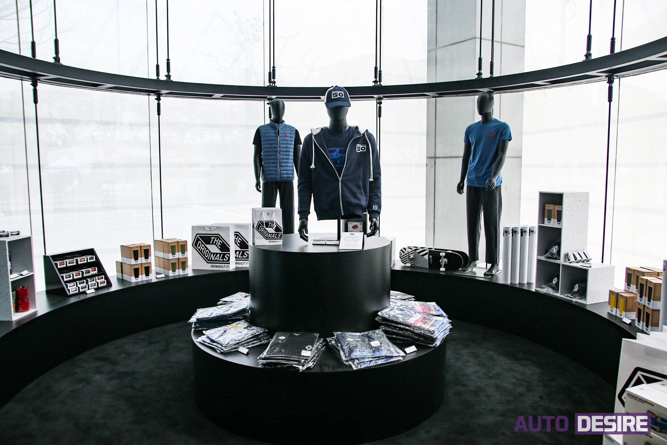 실내 공간 곳곳에서도 르노의 정체성을 더 강조하기 위한 로장주 엠블럼 조형물, 디자인이 곳곳에 적용되었고 모자, 아우터, 셔츠 등 다양한 의류와 함께 다이캐스트 모형, 스티커, 라이프 제품 등 다양한 굿즈까지 만나볼 수 있게 공간을 구성했다.