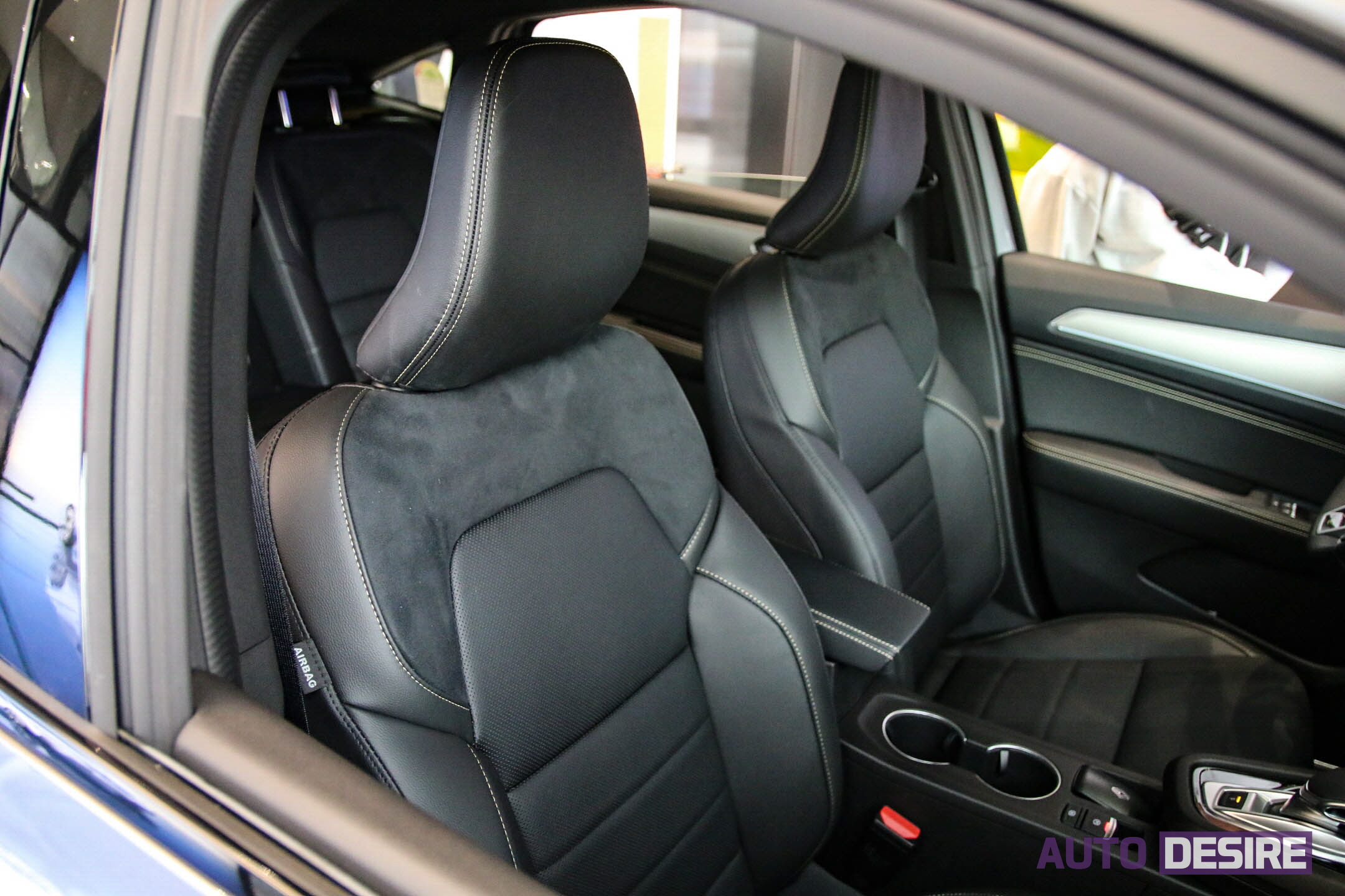인테리어 컬러는 블랙 가죽시트에 블랙 헤드라이너, 골드 스티치가 적용되며 기본 인조 가죽으로 제공되지만 블랙 가죽시트 패키지 선택 시 천연가죽과 함께 운전석/동승석 파워 시트 및 열선, 통풍 기능과 함께 뒷좌석 열선시트, 앰비언트 라이트, 주차 조향 보조 시스템, LED 룸램프 등이 적용된다.
