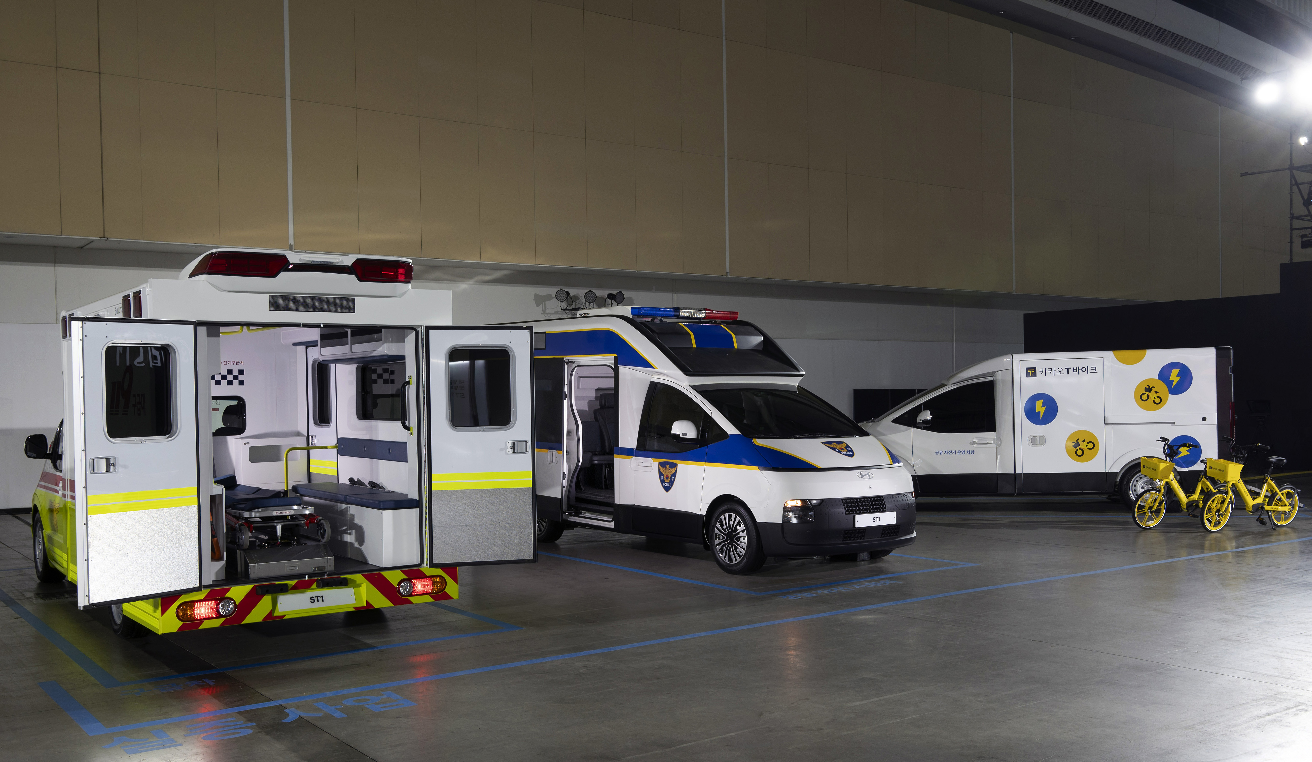 먼저, ST1은 카고와 카고 냉동 모델 외에도 샤시캡 모델을 바탕으로, 고객사/파트너사의 비즈니스에 맞춰 경찰 작전차량, 앰뷸런스, 캠핑카, 전기 바이크/개인 모빌리티 충전 및 관리 차량, 이동식 스마트 팜, 애완동물 케어숍, 이동식 LP바 등 다양한 특장 모델을 제작할 수 있다.
