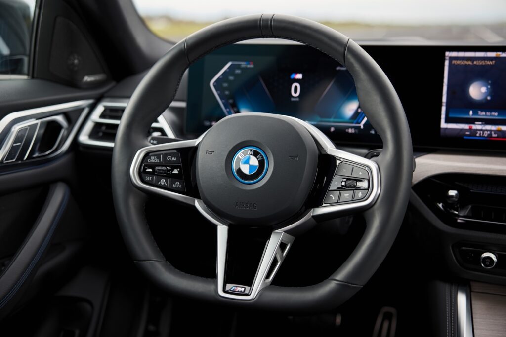 인테리어에서의 변화는 소소한 편으로 12.3인치 디지털 클러스터와 14.9인치 인포테인먼트 시스템 스크린이 하나로 이어져 있는 BMW 커브드 디스플레이가 기존과 마찬가지로 적용되어 있고, 디자인적인 변화로는 D 컷과 함께 센터 라인까지 추가한 새로운 M 스포츠 스티어링 휠과 송풍구 디자인도 더 심플한 타입으로 변경된 정도. 이미 i4가 출시 당시 BMW 최신 인테리어 사양을 대거 적용하고 나왔기 때문에, 쿠페나 컨버터블에 비해서는 변화 폭이 적은 편이다.