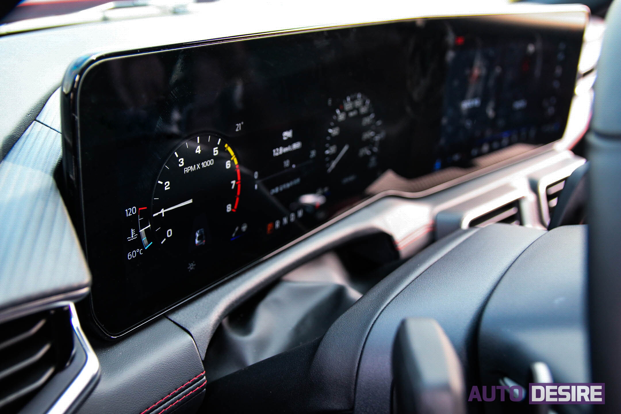12.4인치 디지털 클러스터는 3D 게임 제작용 언리얼 엔진을 기반으로 제작된 주행 모드별 애니메이션 그래픽을 제공, 모드 변경 시마다 운전자의 흥미를 이끌어주는데, 이 외에도 3세대 머스탱, 일명 '폭스 바디'의 계기판을 모티브로 한 그래픽도 제공해 아날로그 감성을 느끼고 싶은 오너들의 취향까지 반영했다. 물론 주행 모드와 연동해 계기판 테마 변경도 가능하다.