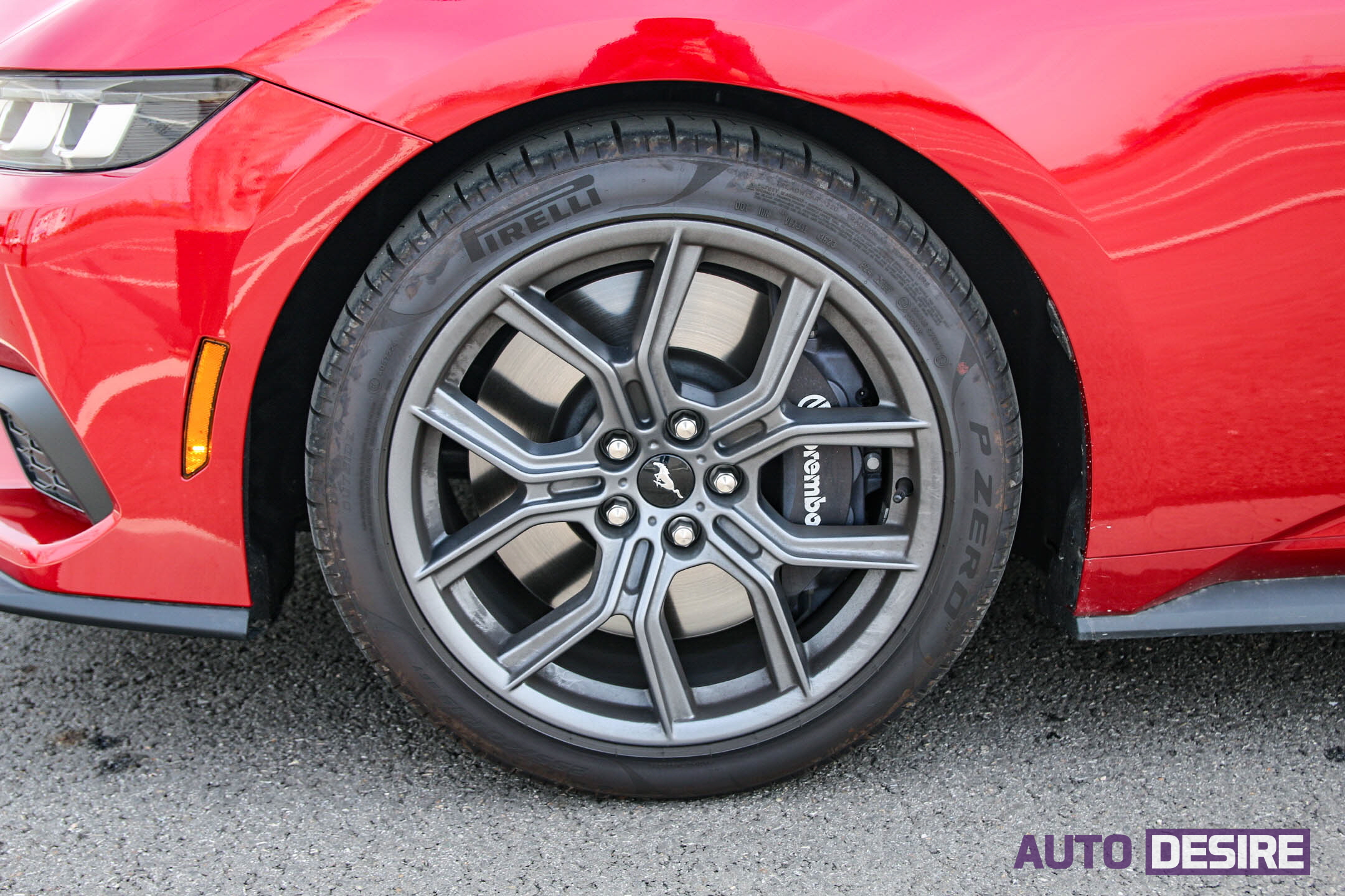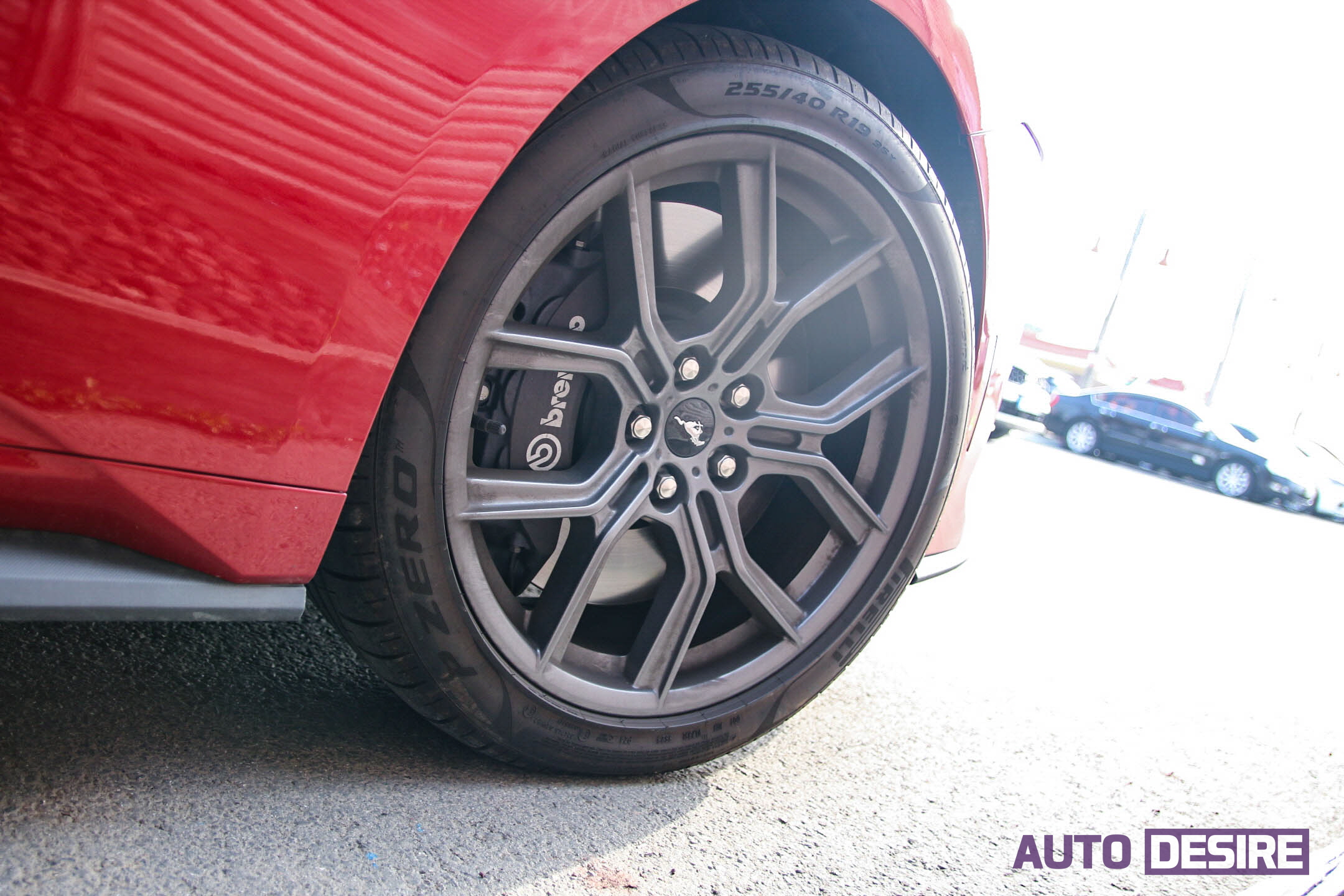 먼저 탔던 컨버터블과 동일하게 2.3 에코부스트 쿠페에는 5 Y-스포크 19인치 휠과 255/40/19 사이즈의 피렐리 피제로 서머 타이어, 블랙 컬러의 전륜 브렘보 6P 브레이크 캘리퍼가 장착된다.
