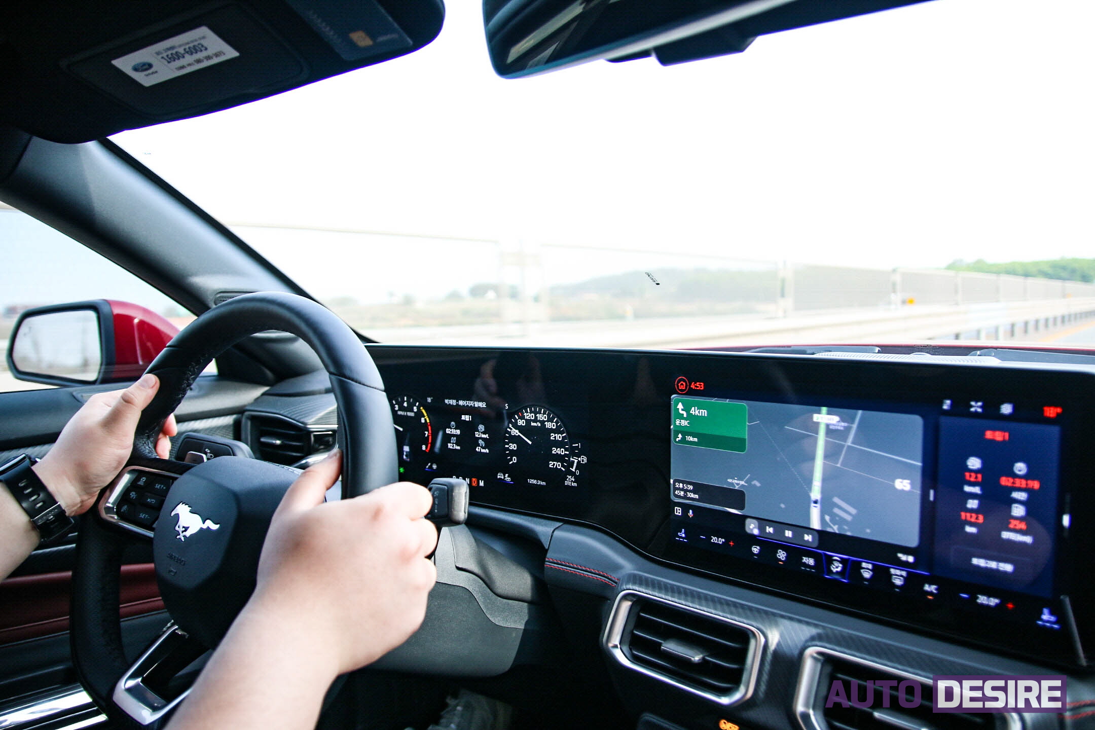 역시나 컨버터블 모델 시승 시에도 확인한 부분으로, 6.5세대 에코부스트 모델과 비교하면 배기 사운드도 조금 더 굵직하고 터프해진 사운드로 세팅이 되어서 8기통 엔진만큼은 아니지만 가속 시 터보가 돌아가는 소리와 함께 엔진 회전수를 높여가는 재미가 꽤 있는 편이다.