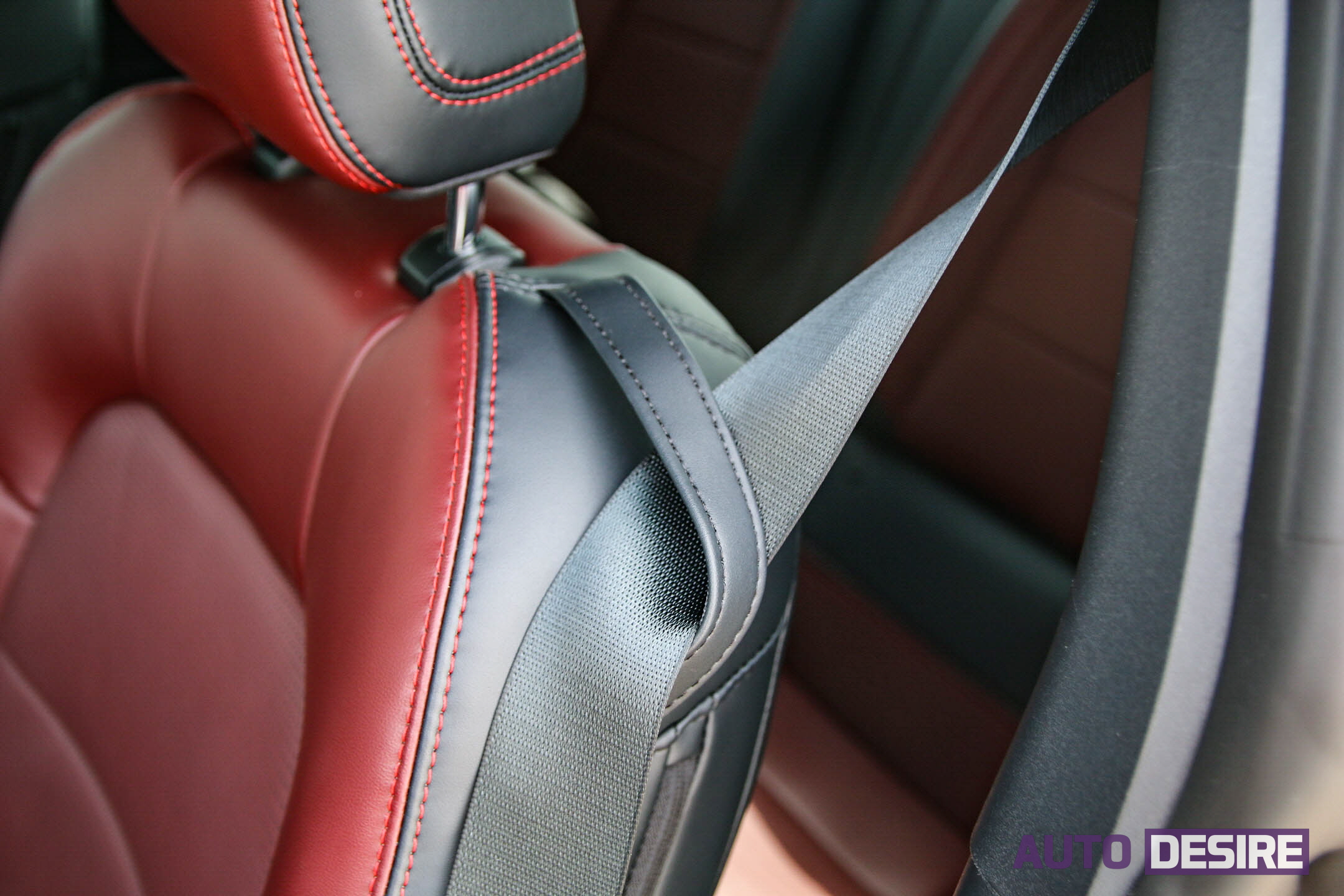 1열 시트는 조금 더 본격적인 버킷 시트 형상으로 가져갔어도 좋을 것 같지만, 열선/통풍을 갖춘 것과 함께 데일리/장거리 주행에서의 편의성을 조금 더 고려한 착좌감과 형상을 가져가고, 시트 포지션보다 많이 뒤쪽에 위치하는 안전벨트를 시트에 고정시킬 있도록 자석이 부착된 가죽고리를 달아놓았다.