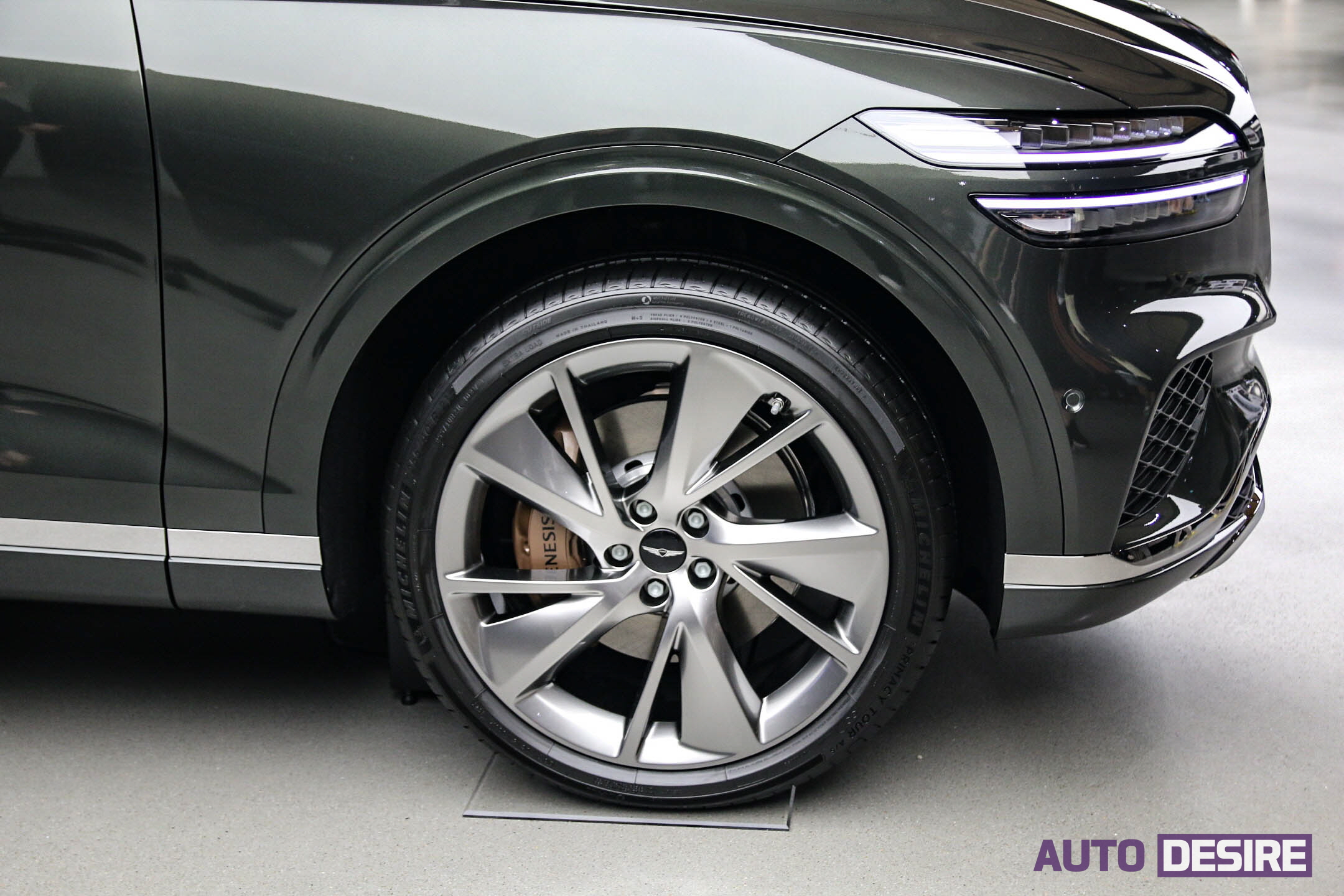 기존에 스포크 표면에 G-매트릭스 패턴을 새겼던 스포츠 패키지 전용 21인치 휠은 표면은 매끄럽게 정리, 스포크는 보다 날카롭게 다듬고 스포크에 림이 만나는 부분에 블랙 두 줄 라인을 넣어 제네시스 브랜드를 상징하는 요소를 변경, 새롭게 역동적인 이미지를 전한다. 19인치 휠도 더블 스포크 타입의 다크 메탈릭 휠로 변경되었고, 제네시스 액세서리에서 21인치 매트 블랙 경량 단조 휠도 추가 선택이 가능하다.