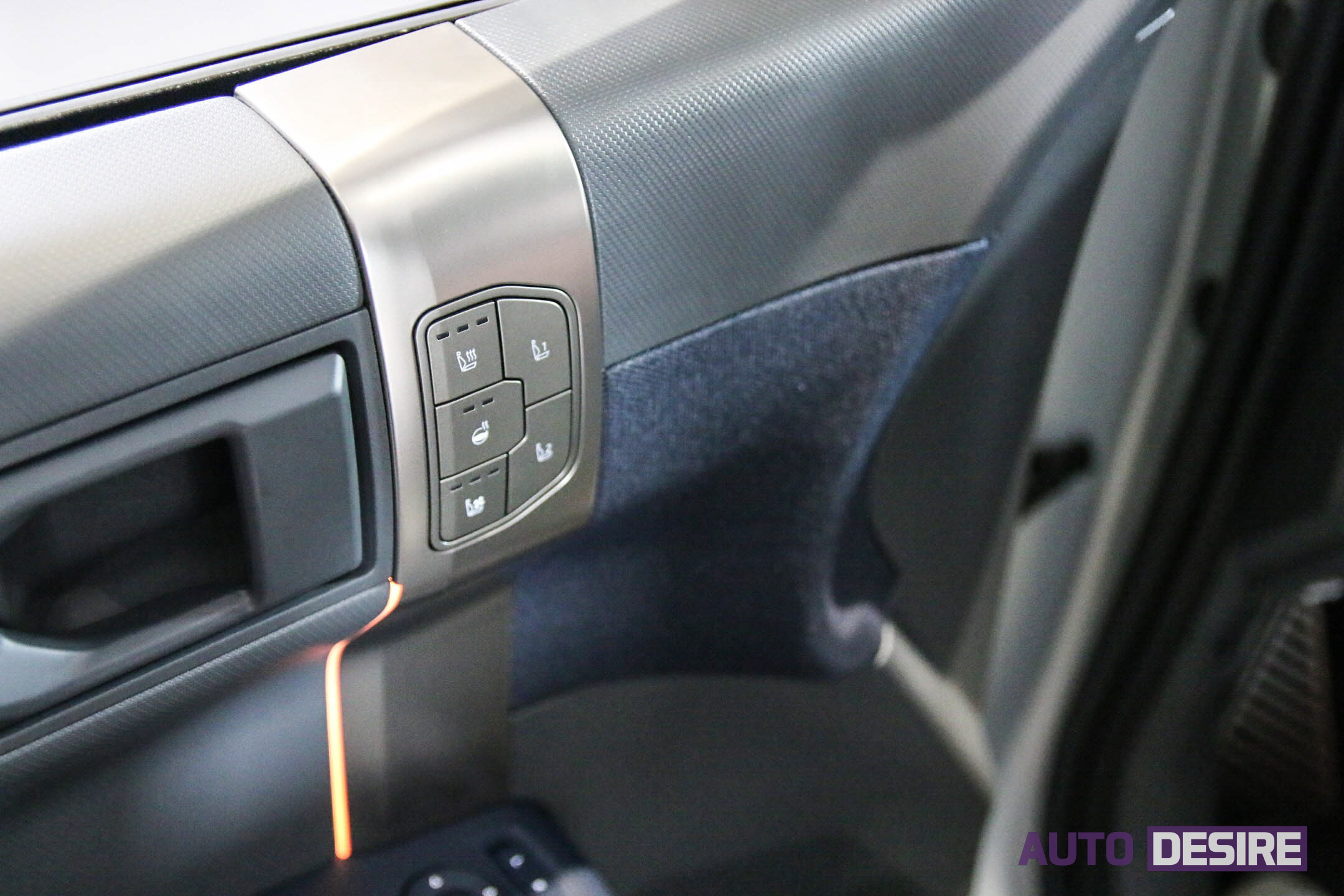 메시 타입 헤드레스트가 적용되는 시트는 시트 등받이 중간 부분을 경계로 투톤 컬러가 적용되며 열선과 통풍, 운전석 메모리 기능에 동승석에도 워크인 디바이스와 함께 릴랙션 시트도 적용되어 동승석은 주행 중에도, 운전석은 충전 등 정차 중에 편하게 휴식을 취할 수 있게 했다. 시트 위치 조정 및 릴랙션 기능은 시트 쿠션 측면부 버튼으로, 시트 메모리 기능 및 열선/통풍, 스티어링 휠 열선 버튼은 도어 트림부에 위치한다.
