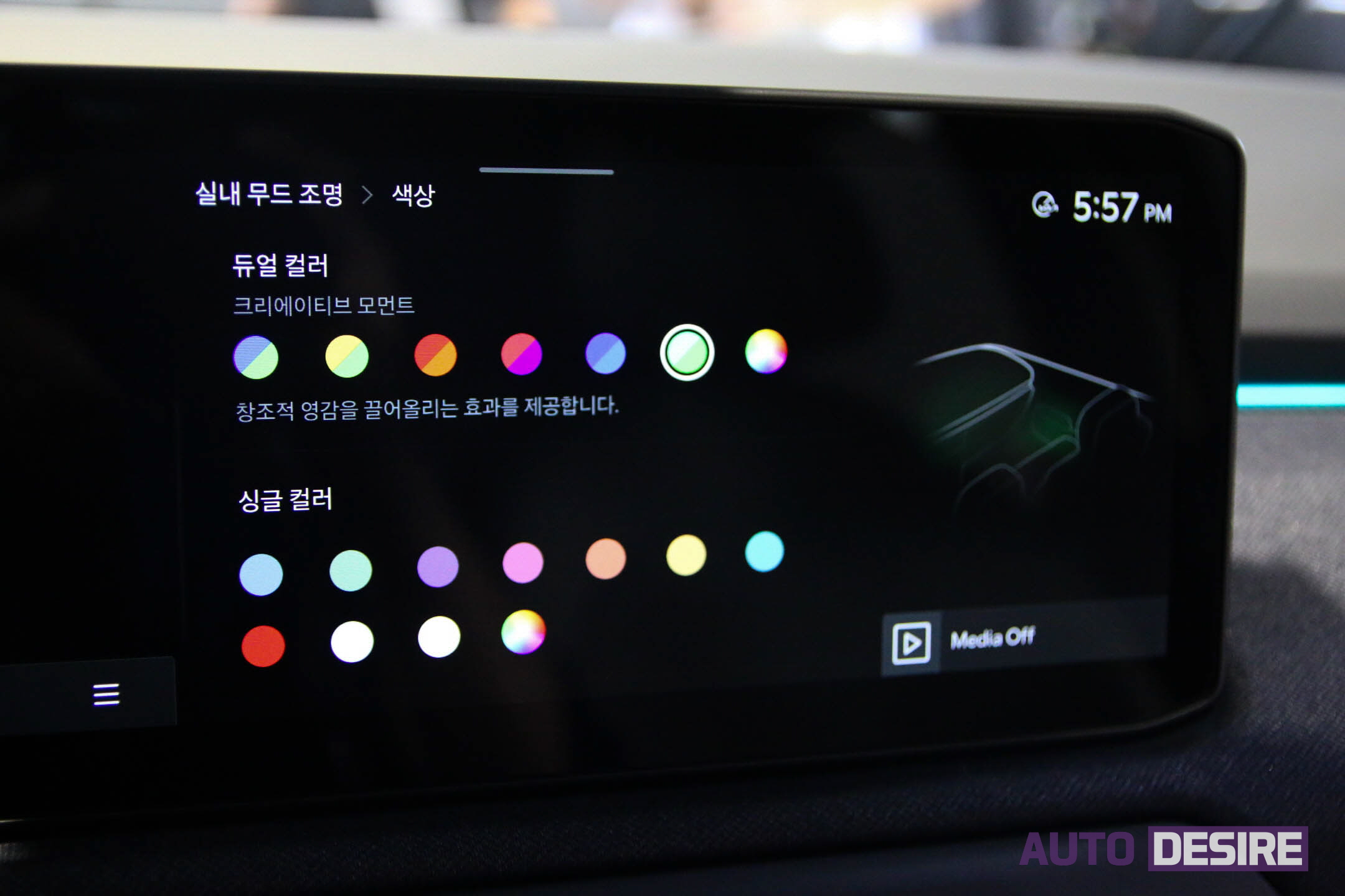 실내에 고급스러우면서도 생동감을 높여주는 '다이내믹 앰비언트 라이트'도 적용되어 차량 주행 속도에 따라 밝기가 자동으로 조정되도록 설정이 가능하며, 웰컴&굿바이 세레모니, 시동 온/오프, 음성인식, 드라이브 모드 변경 및 제한 속도 알림과 연동해 생동감 있는 조명을 표현한다. 컬러도 사용자 취향에 따라 싱글 컬러 외에도 실내 상/하단부 조명을 나눠서 설정 가능한 듀얼 컬러를 제공한다.