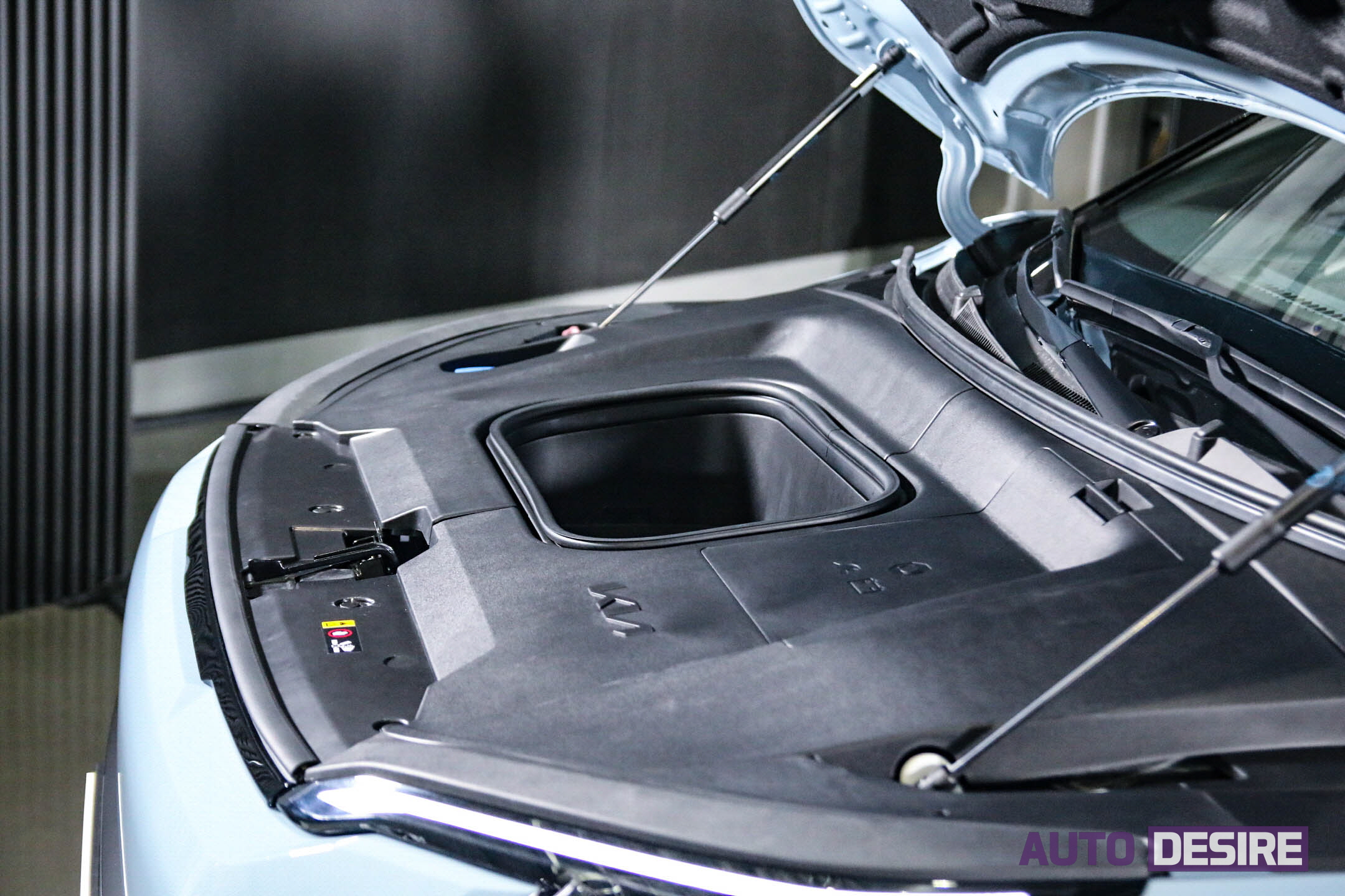 컴팩트한 차량이지만 활용성은 크게 끌어올리기 위해 프런트 트렁크 역시 존재하며, 보닛에는 가스식 리프트가 적용되는 것도 인상적이다. 프런트 트렁크는 25리터로 용량이 그렇게 큰 편은 아니고, 면적도 그리 넓지는 않지만 제법 깊이는 있어 보조 충전 케이블, 간단한 공구나 차량 용품 등을 보관하기에는 괜찮아 보인다.