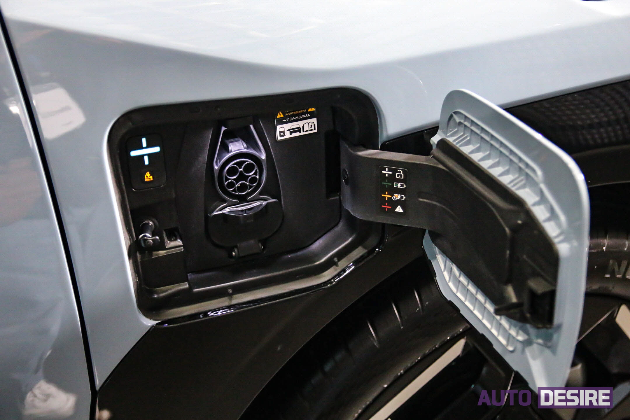 충전구는 DC 콤보 타입으로 조수석 펜더 부분에 위치, 커버는 수동식 팝업 타입으로 적용되었다.