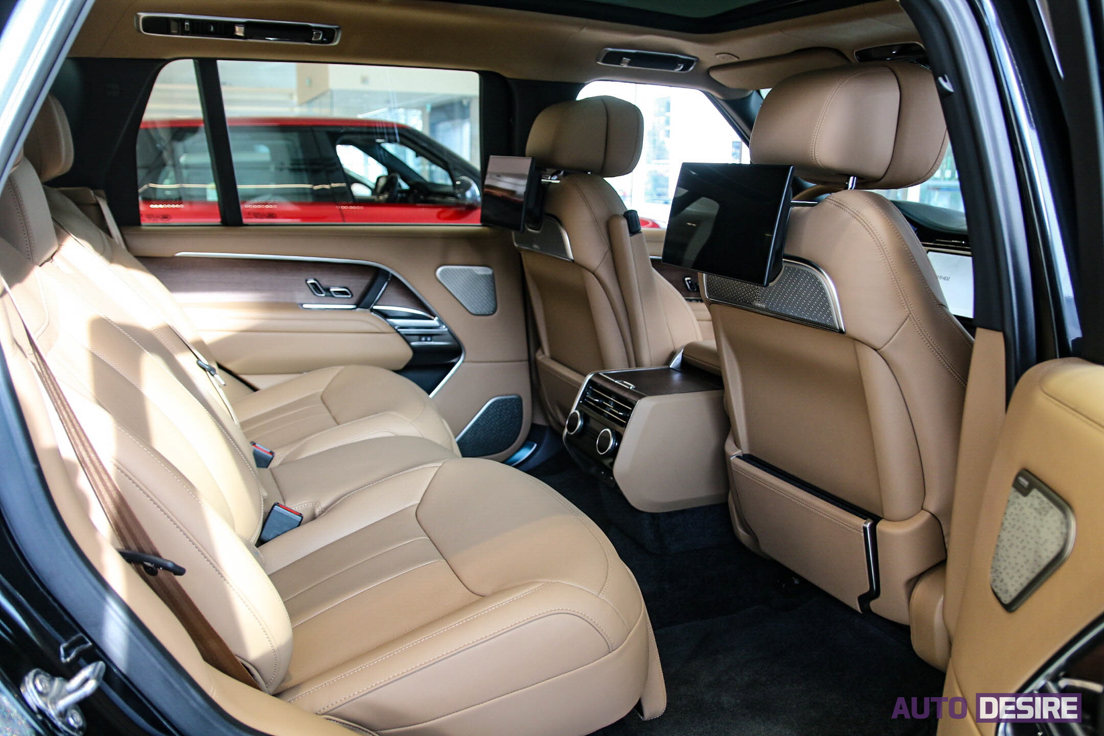 후석의 공간 구성 및 주요 사양은 기존과 동일한 모습. LWB 모델은 3,197mm에 달하는 긴 휠베이스를 통해 다리를 편하게 더 뻗어도 되는 레그룸을 제공하며, 전동 확장식 암레스트와 8인치 터치스크린 컨트롤러, 센터 수납공간, 후석 11.4인치 디스플레이, 메리디안 시그니처 사운드 시스템이 제공되어 레인지로버의 편안한 승차감에 프리미엄 사양들과 함께 뒷좌석에 탑승하는 경험을 더 특별하게 만들어준다.