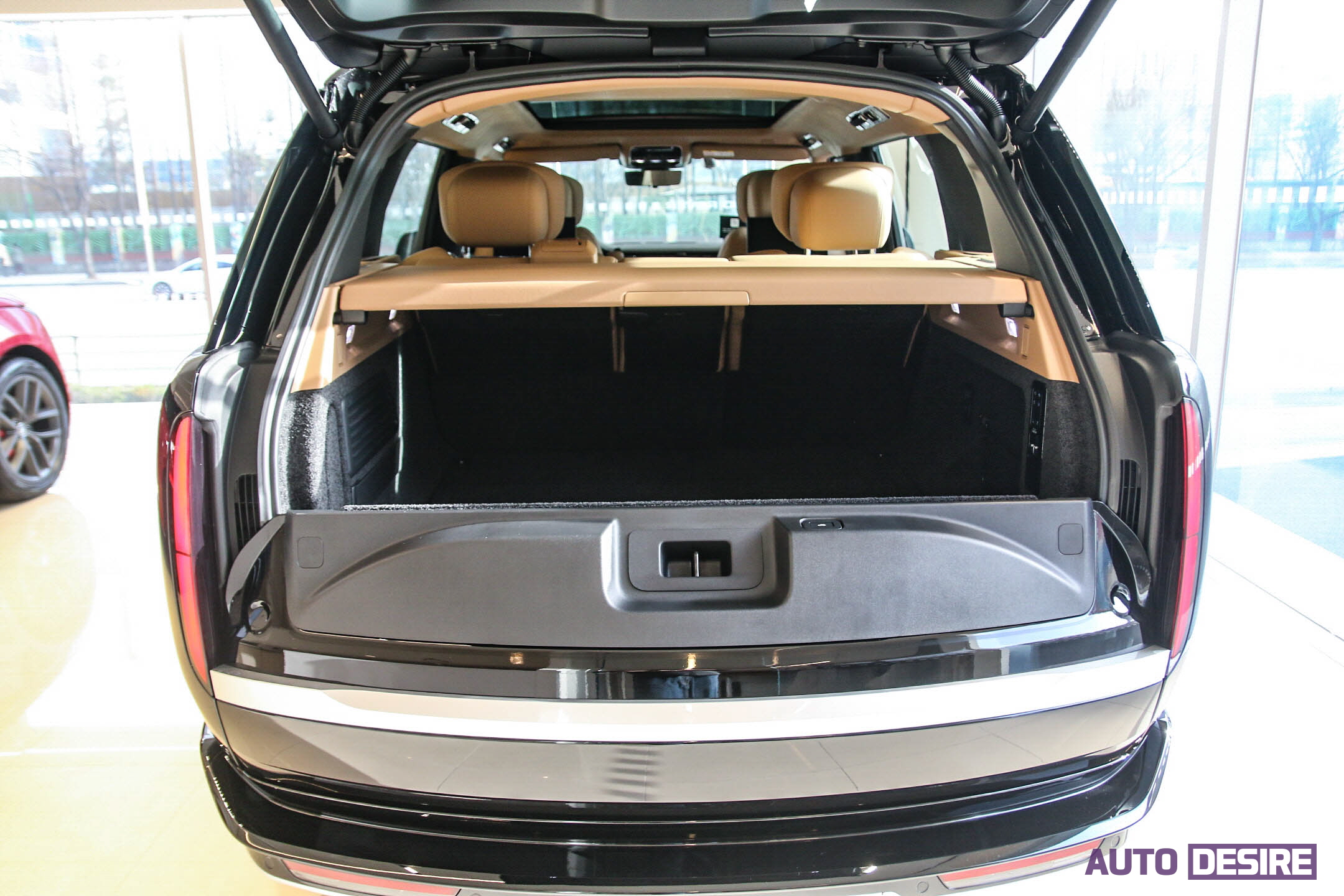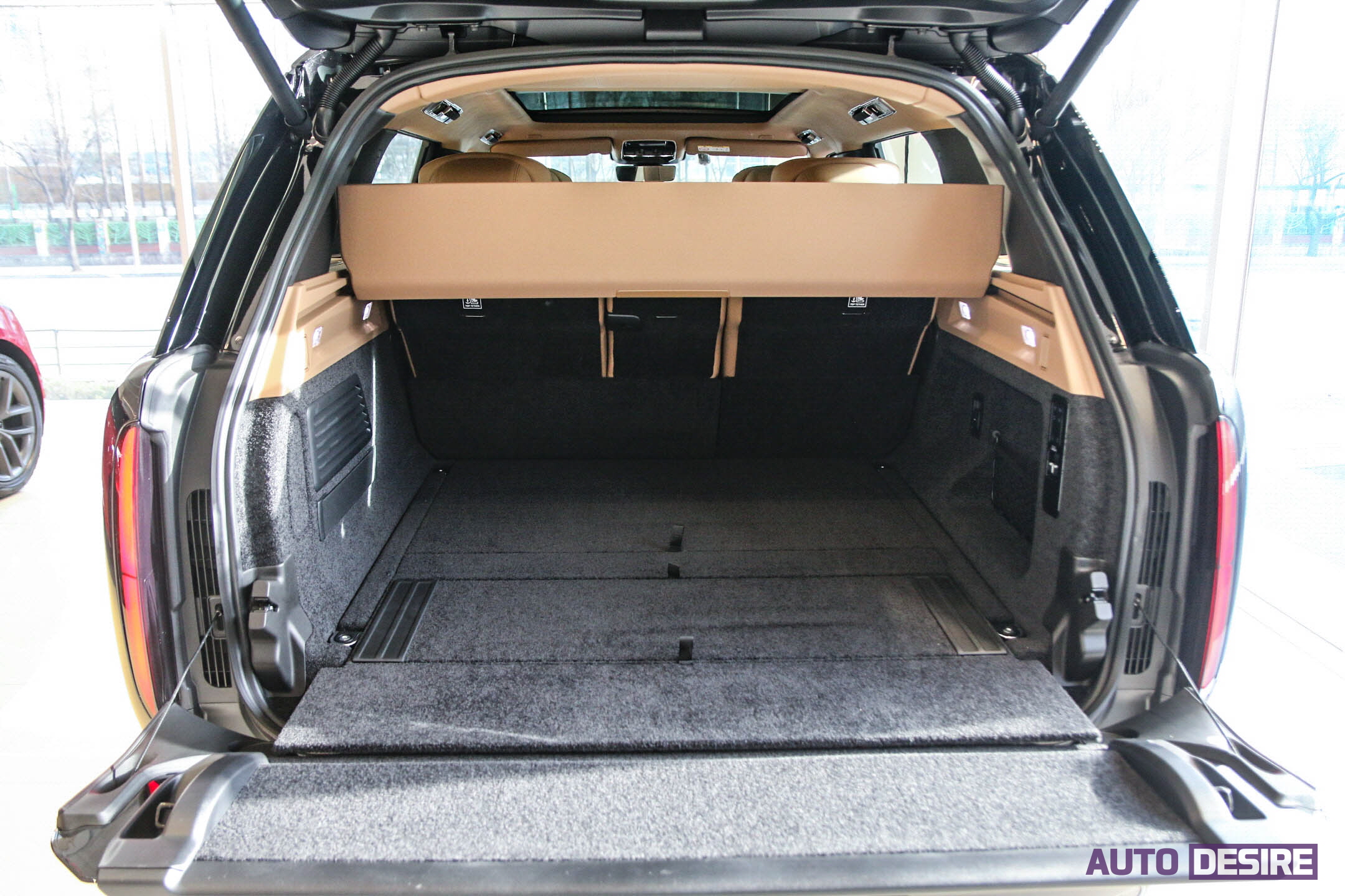 레인지로버 LWB 5인승 모델의 트렁크 적재 용량은 기본 818리터로 제공, 기본 상태에서도 상당히 여유 있는 공간을 사용할 수 있고 클램쉘 타입의 테일게이트는 상하단 게이트 모드 전동식으로 오픈, 러기지 보드도 전동식으로 개방이 가능하다. 또 전자식 에어 서스펜션 적용으로 트렁크 높낮이 조절이 가능해 화물 적재 시 편의성도 챙겼다.