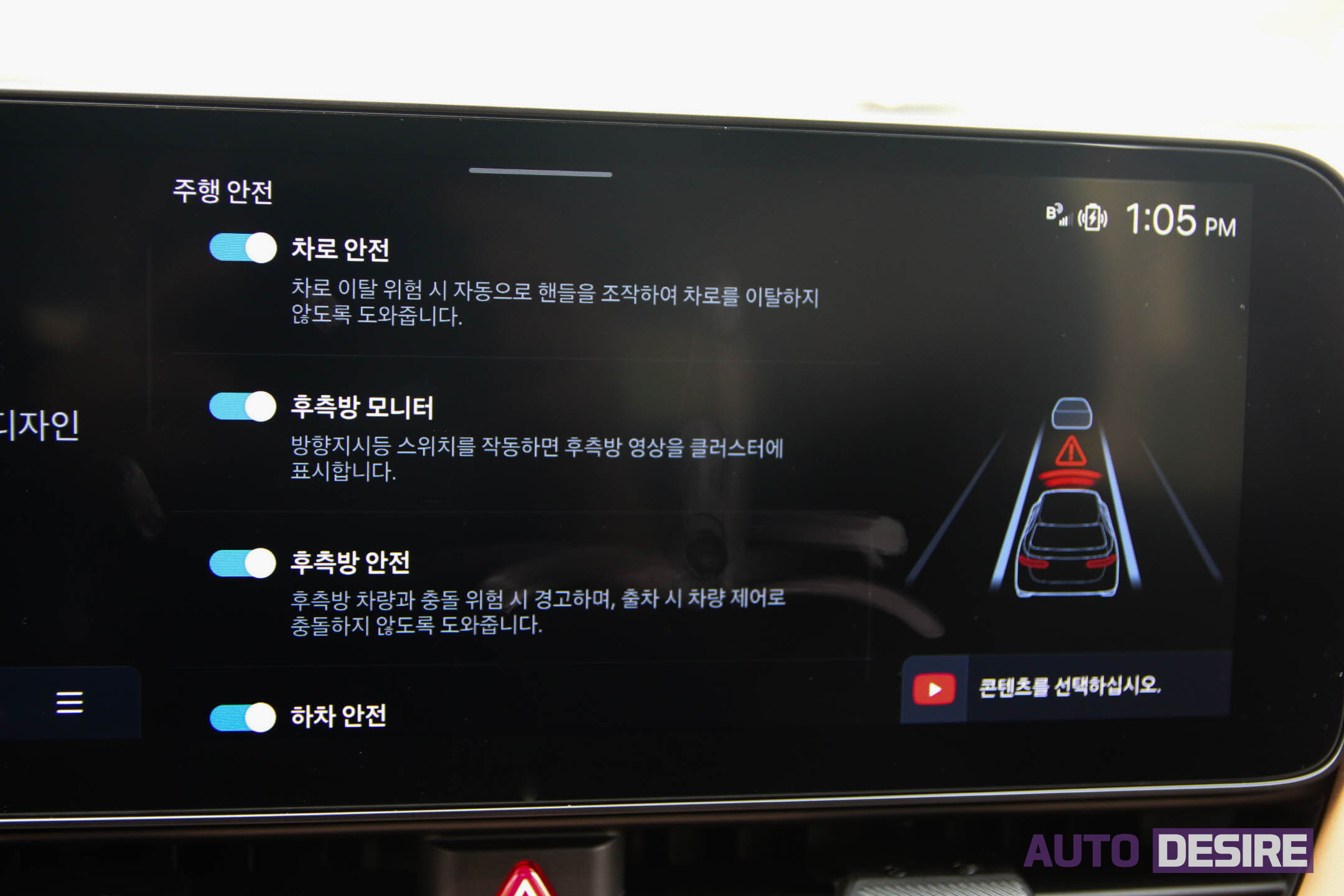 안전 사양 및 주행 보조 시스템에서는 2열에 측면 에어백이 추가되어 총 8개 에어백이 탑재되고, 직접식 감지 스티어링 휠과 차로 유지 보조 2, 원격 스마트 주차 보조 2, 전방/측방/후방 충돌방지 보조, 전/측/후방 주차 거리 경고 등이 새롭게 추가되었다.