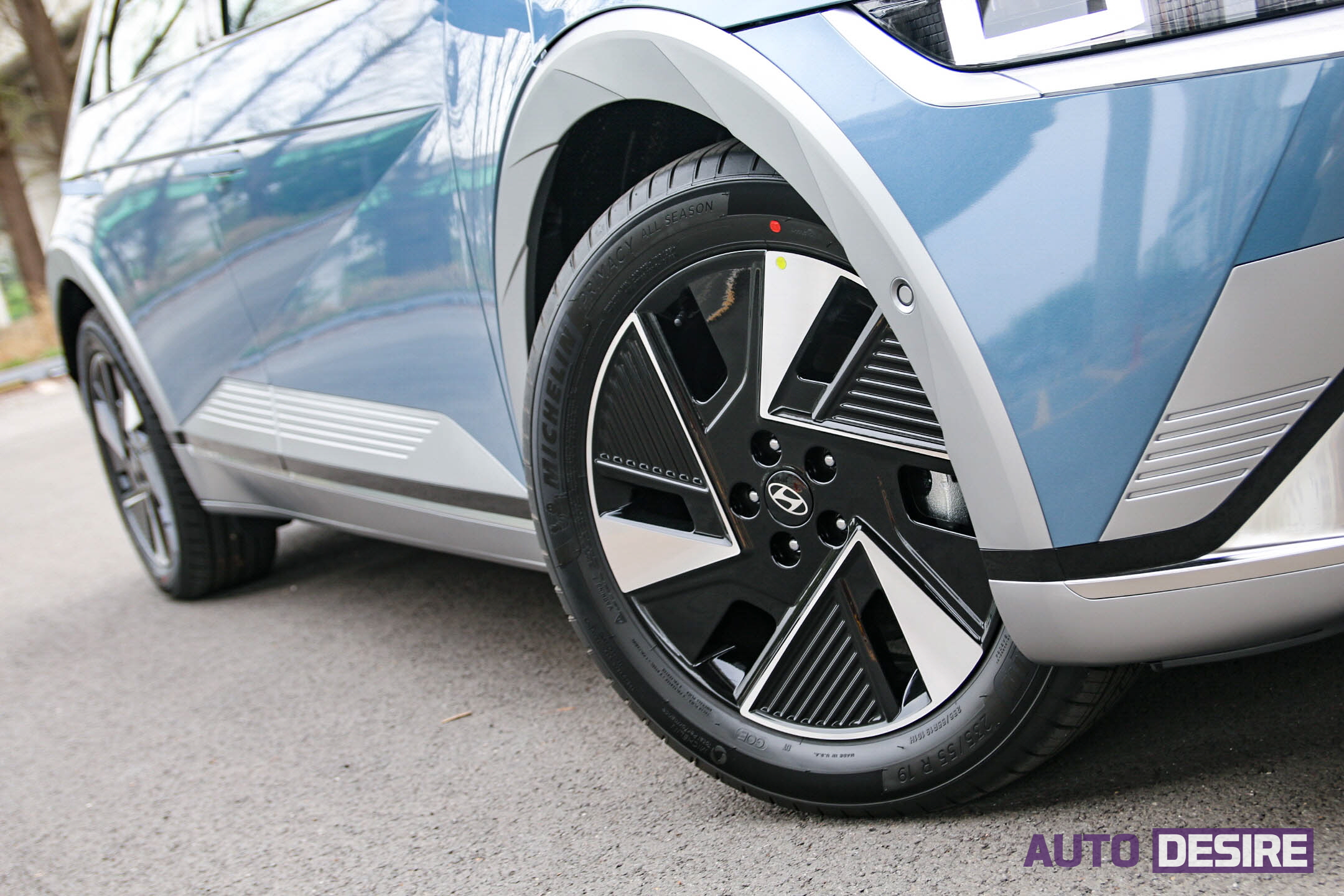 또 19인치 휠이 부채꼴 타입으로 두꺼운 트윈 3-스포크에 공력 성능을 고려한 플랫한 디자인을 적용, 기존의 5-스포크 팬 타입의 휠과 비교해 호불호가 좀 갈릴 수는 있겠지만, 기하학적인 형상으로 미래적이고 독특한 분위기를 만들어준다.