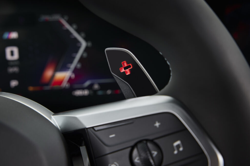 M135 xDrive에는 레드 센터 라인이 더해진 M 스포츠 스티어링 휠과 헤드레스트 일체형의 M 스포츠 버킷 시트, 레드 포인트 컬러가 적용된 시프트 패들 등 M 퍼포먼스 사양이 적용된다.