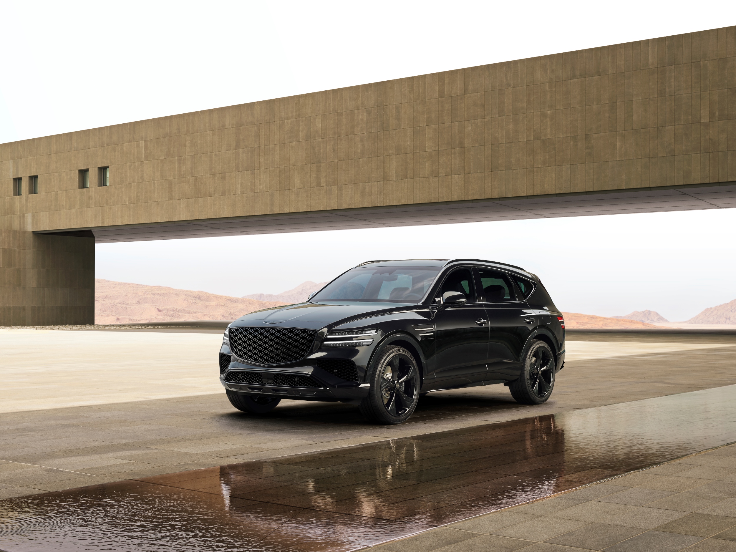 Genesis meticulously finishes major external parts such as GV80 Black's front radiator crest grille, bumper garnish, front wing emblem, DLO molding, roof rack, and rear bumper molding in black, and side bezels inside the headlamp, and applies a glossy black 22-inch wheel and a dedicated floating wheel cap as standard, and deploys a dark metallic GENESIS lettering emblem in the tailgate to express GV80 Black's unique presence.