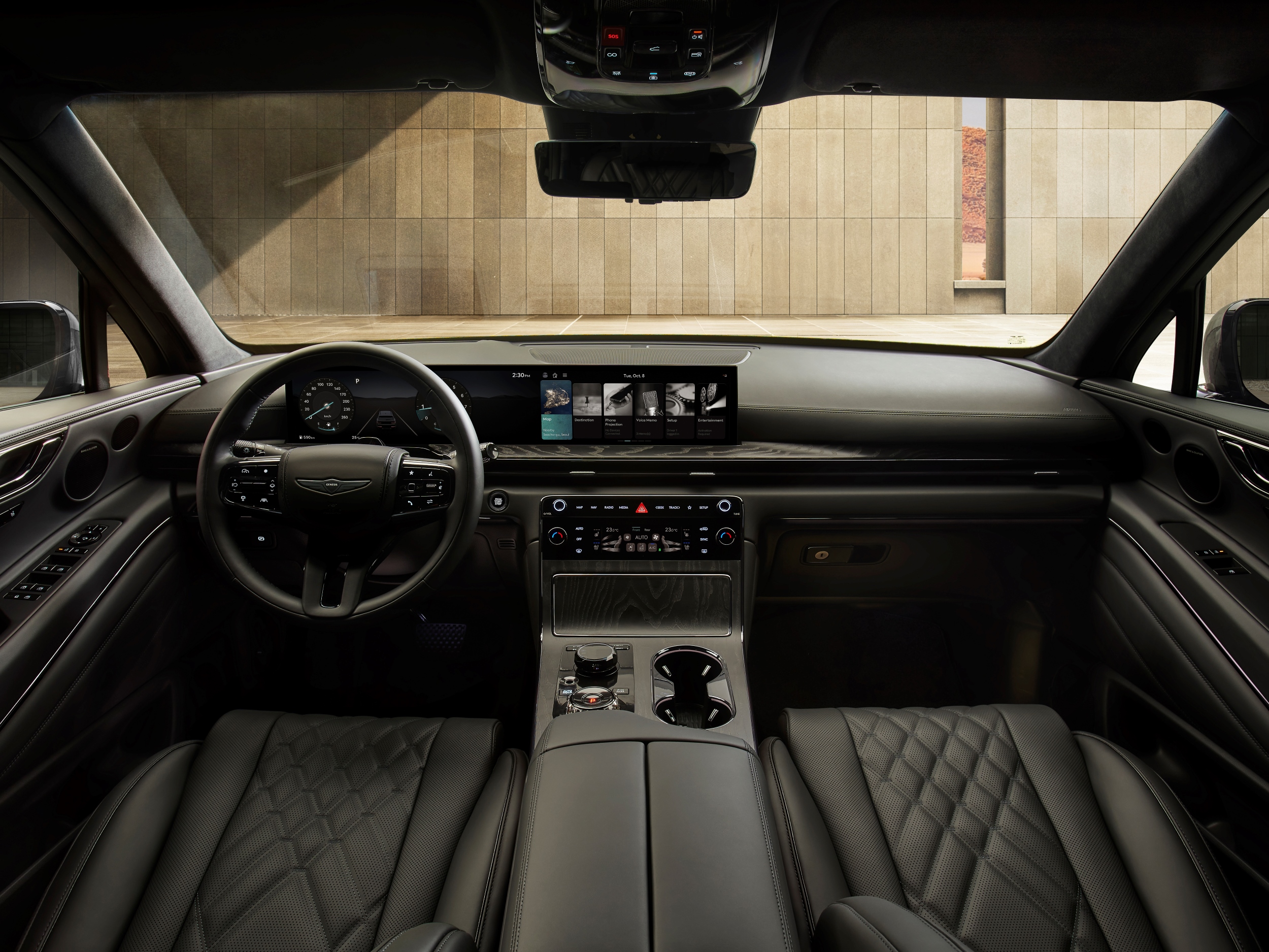The GV80 Black-only Realwood garnish, seat leather finish, quilting and piping, and car mats are applied, and the Welcome/Goodbye animation, which appears on the 27-inch integrated wide display when getting in and out of the vehicle, has also been newly organized for Black.